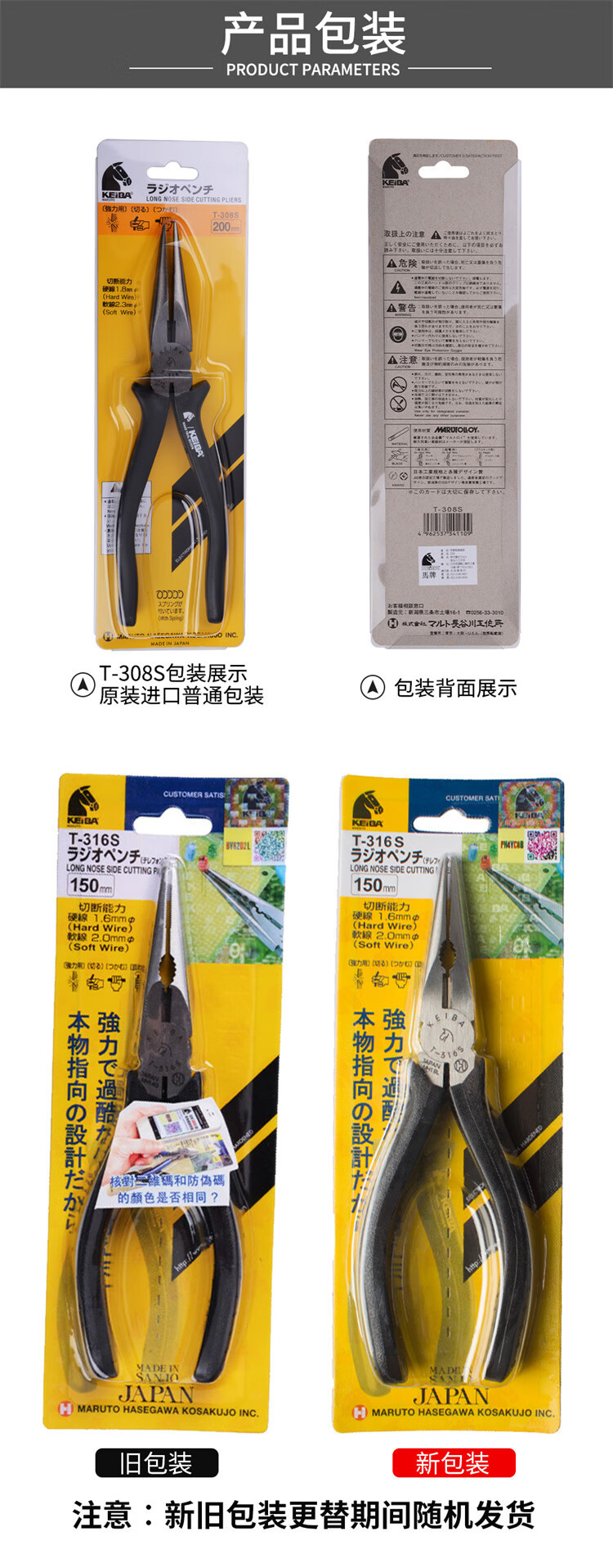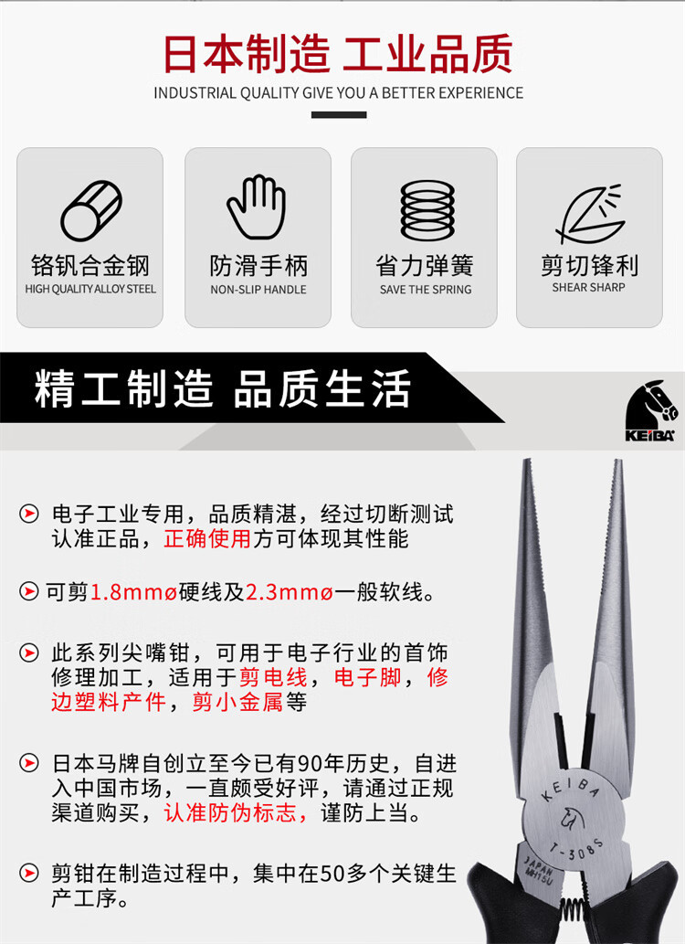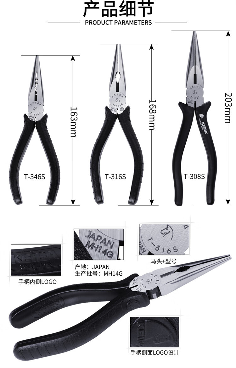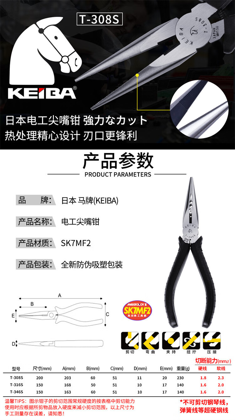 원래 정품 일본 KEIBA 말 브랜드 T-316s/T-346s/308S 전기 등급 팁 펜치 와이어 브레이킹 펜치스토어 가기