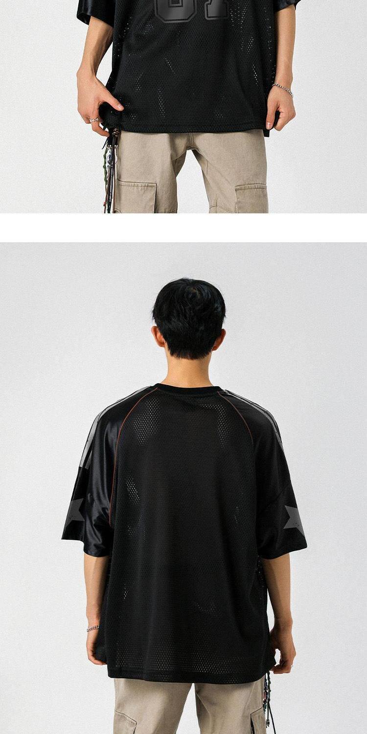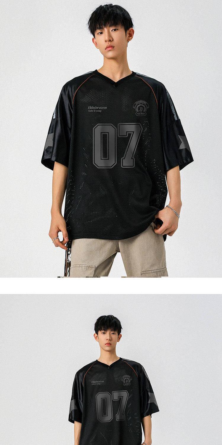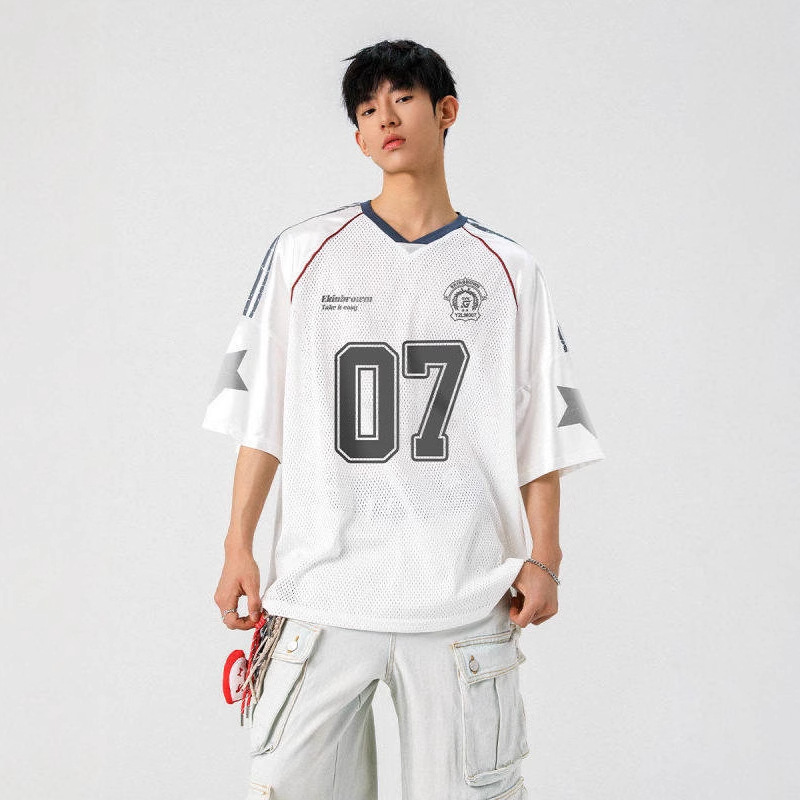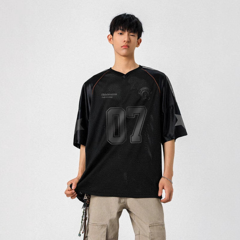 야외 미식 축구 통기성 빠른 건조 메쉬 저지 남성과 여성을위한 여름 낙서 인쇄 디자인 센스 V 넥 반팔 T