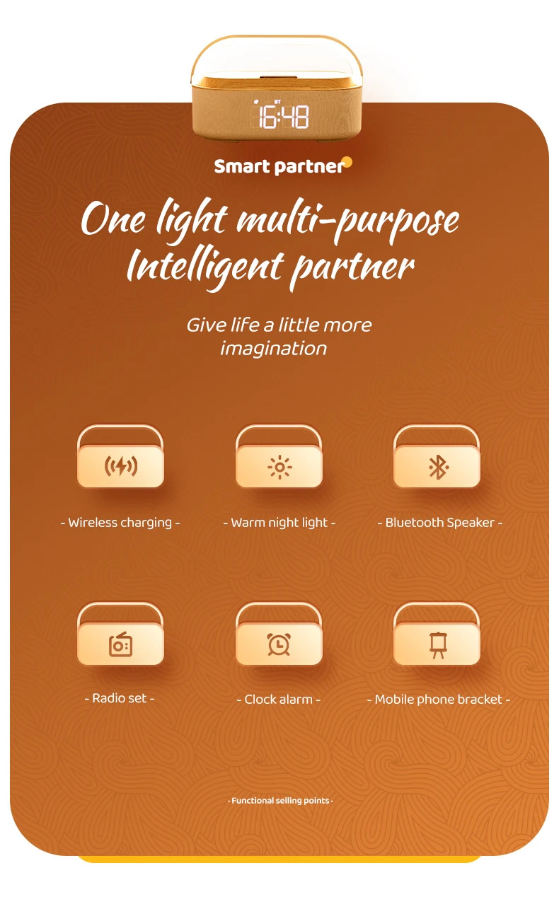 국경을 넘는 블루투스 스피커, 휴대폰 무선 충전, 다기능 선물용 오디오, 무드등, 라디오, 시계, 컴퓨터 선물