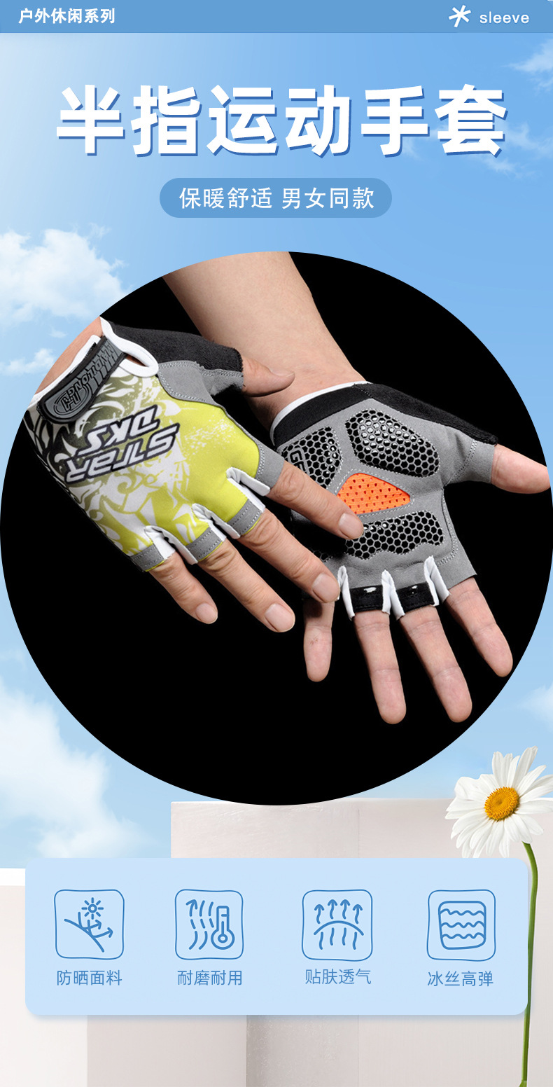 어린이 반 손가락 장갑 얇은 통기성 충격 흡수 내마모성 미끄럼 방지 야외 스포츠 장갑 남성과 여성 사이클링 자전거 장갑