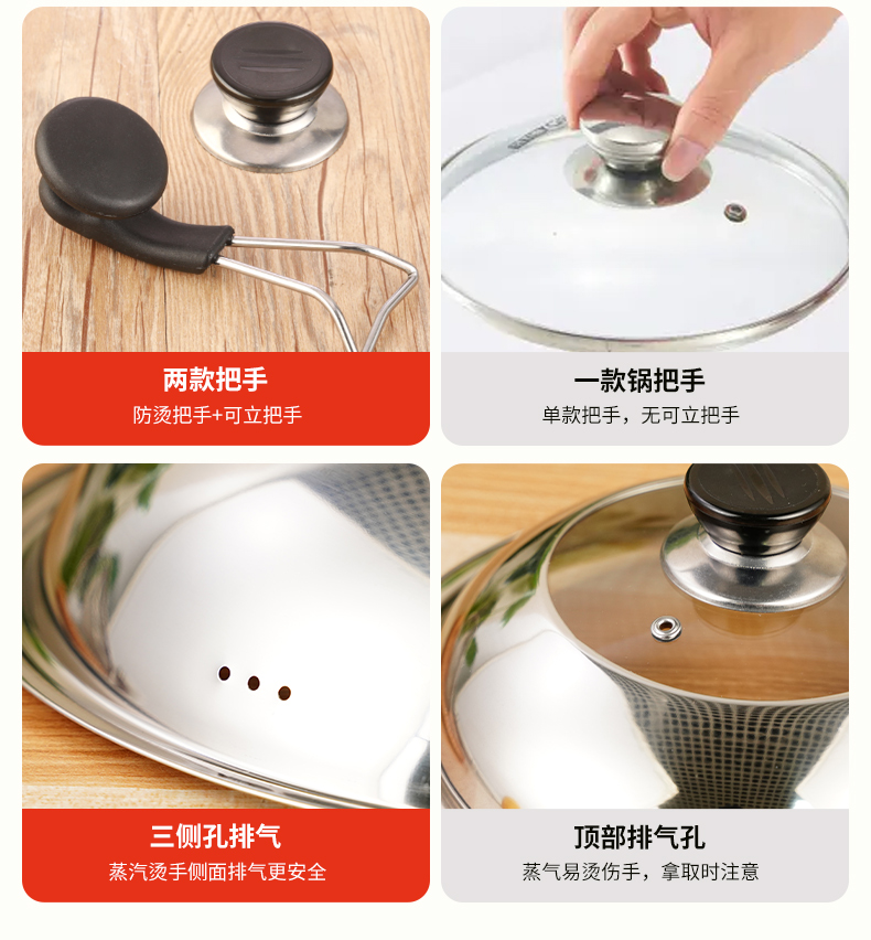 냄비 뚜껑 유리 뚜껑 강화 가시 손잡이 스테인레스 스틸 가정용 버킷 뚜껑 유니버설 뚜껑 호크 뚜껑 반대로 scald 높은 아치