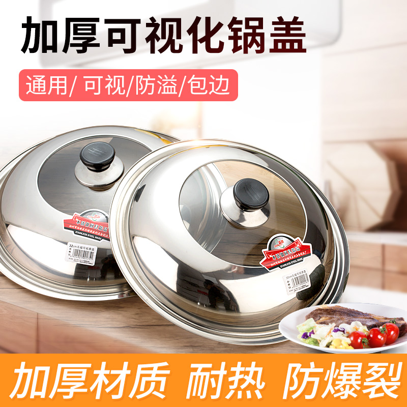 냄비 뚜껑 유리 뚜껑 강화 가시 손잡이 스테인레스 스틸 가정용 버킷 뚜껑 유니버설 뚜껑 호크 뚜껑 반대로 scald 높은 아치스토어 가기
