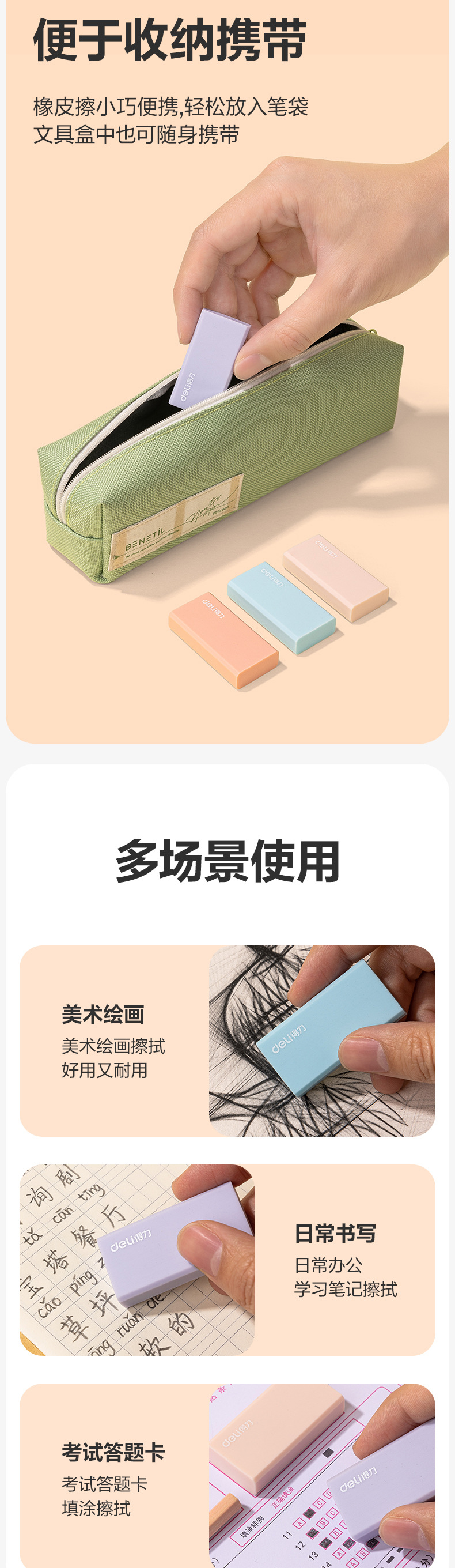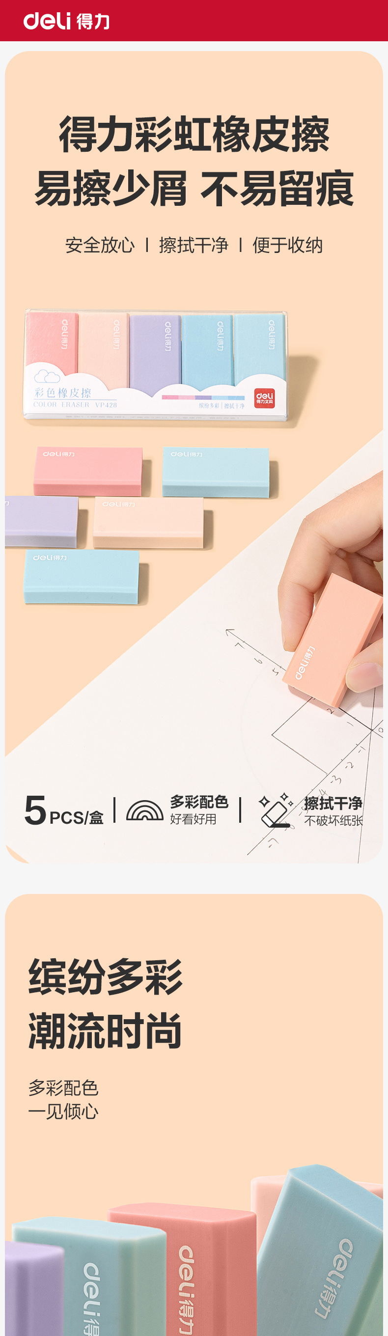 델리 VP428 초등학생용 컬러지우개, 미술학생을 위한 깨끗한 지우개, 다채로운 컬러