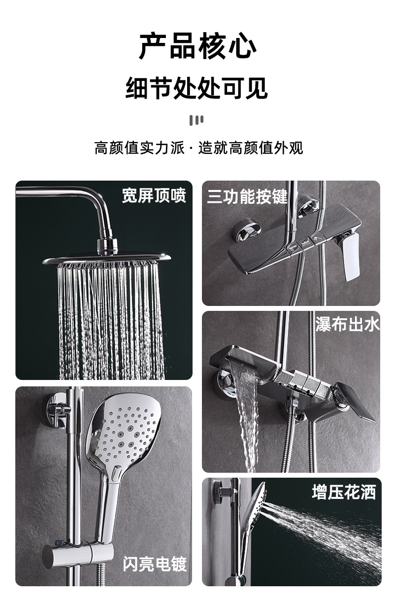 국경 스테인리스 샤워 세트 전체 구리 탑 스프레이 욕실 욕실 목욕 히터 가압 샤워 세트