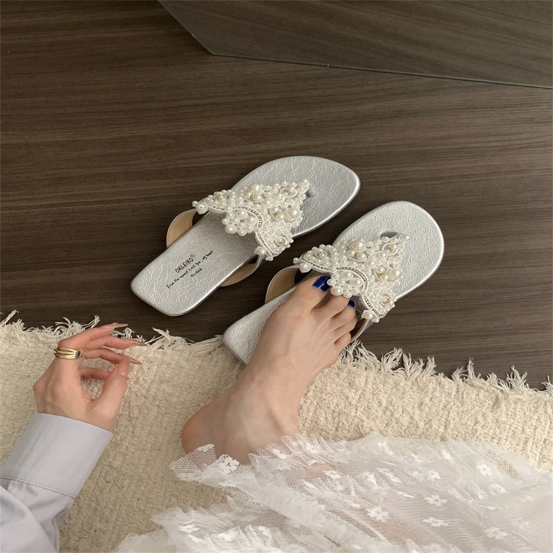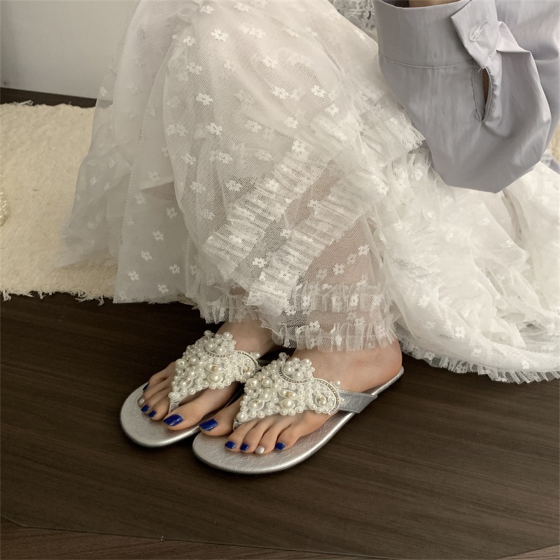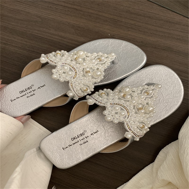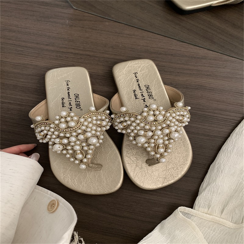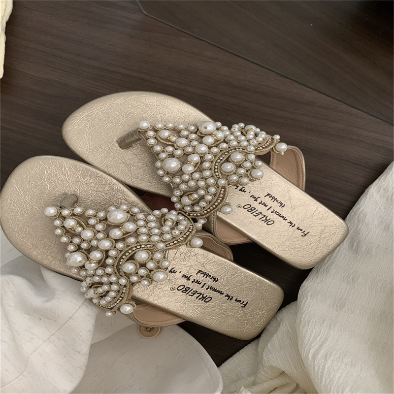진주 요정 플립 플롭 샌들 2024 새로운 여름 프랑스 스타일 레트로 보헤미안 로마 여성 신발스토어 가기