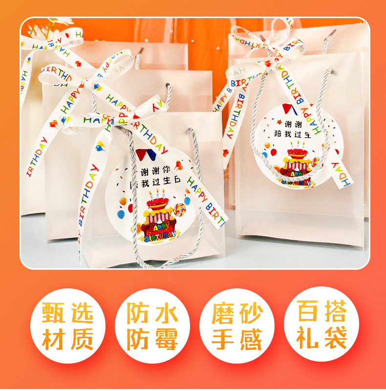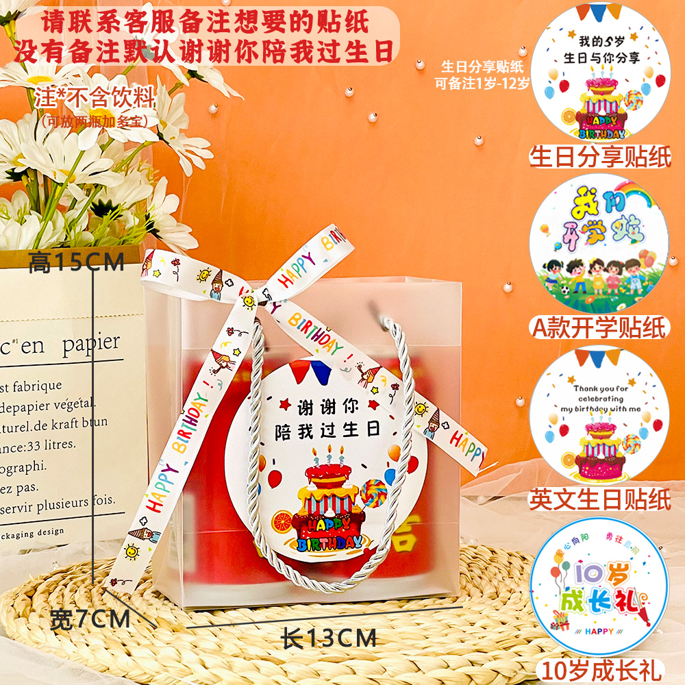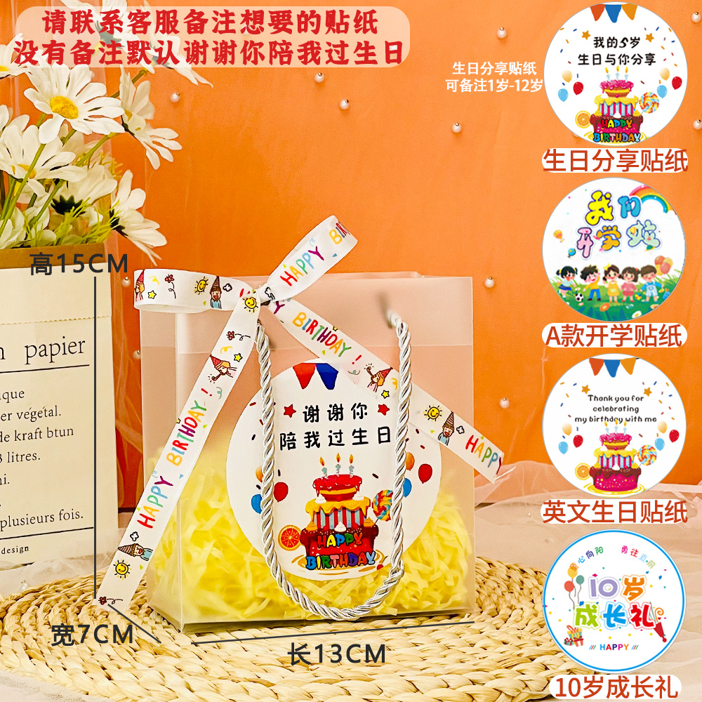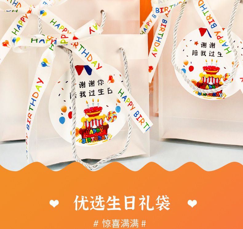 • 생일 스티커 + 생일 리본 + 핑크 잔디 (둥근 밧줄) 길이 13 * 너비 7 * 높이 15CM (미니 가방) 소매 팩 1 개