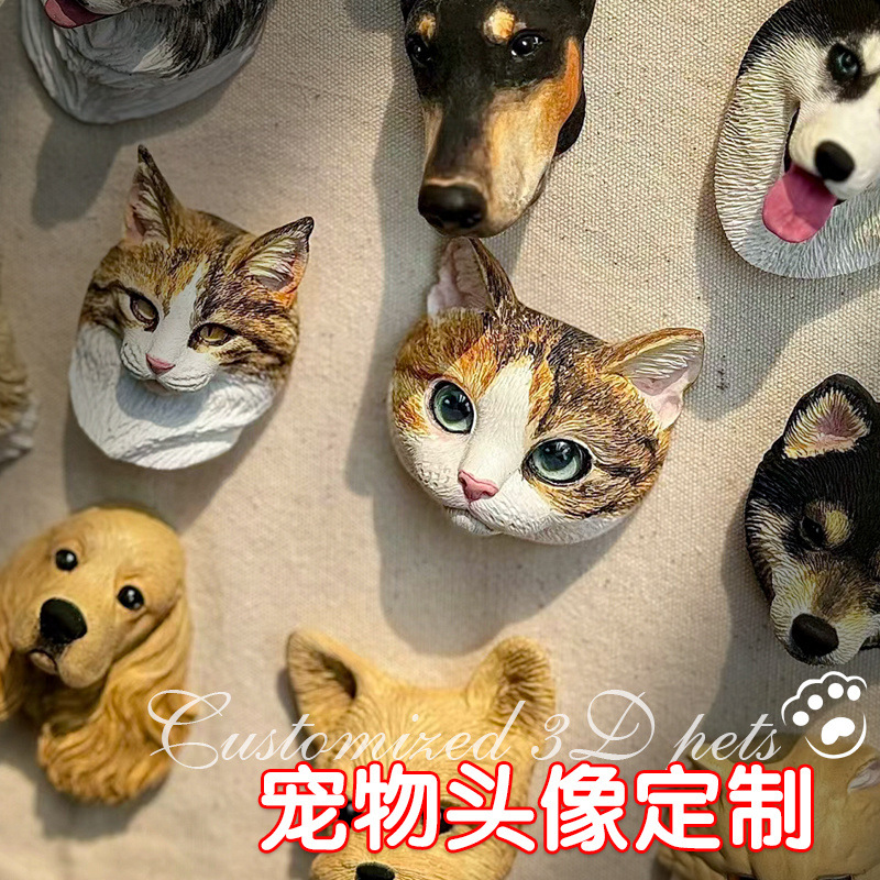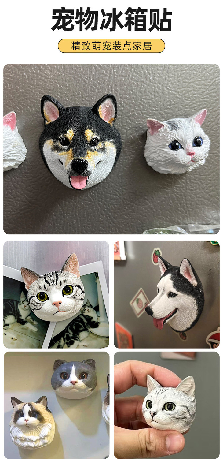 손으로 그린 애완 동물 석고 머리 개 고양이 냉장고 스티커 몸 3D 스테레오 페인트 높은 색 가치 자동차 돌스토어 가기