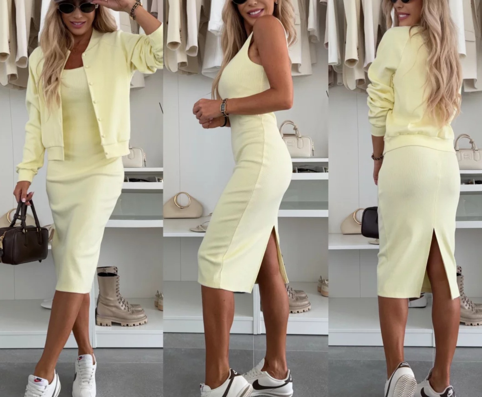2025 여름 크로스보더 아마존 솔리드 컬러 서스펜더 드레스 카디건 자켓 탑 롱 스커트 투피스 세트 여성 의류스토어 가기