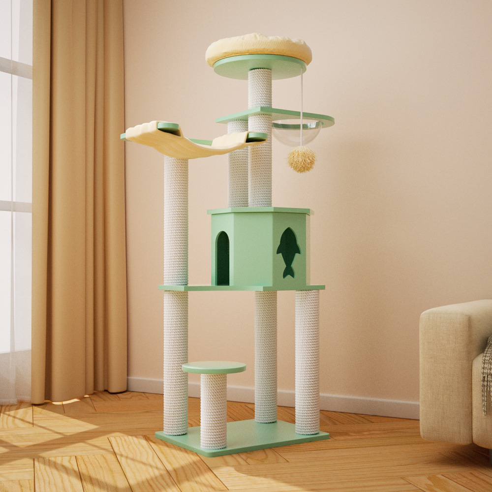 대형 클라이밍 프레임, 고양이 긁힘 방지 기둥, 고양이 클라이밍 프레임, 고양이 둥지, 고양이 프레임, 고양이 트리, 원목 점프 플랫폼, 스윙, 무음