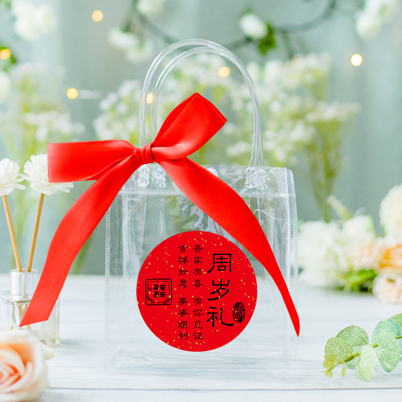 • 빨간 리본 성장 선물 스티커가 달린 반투명 가방