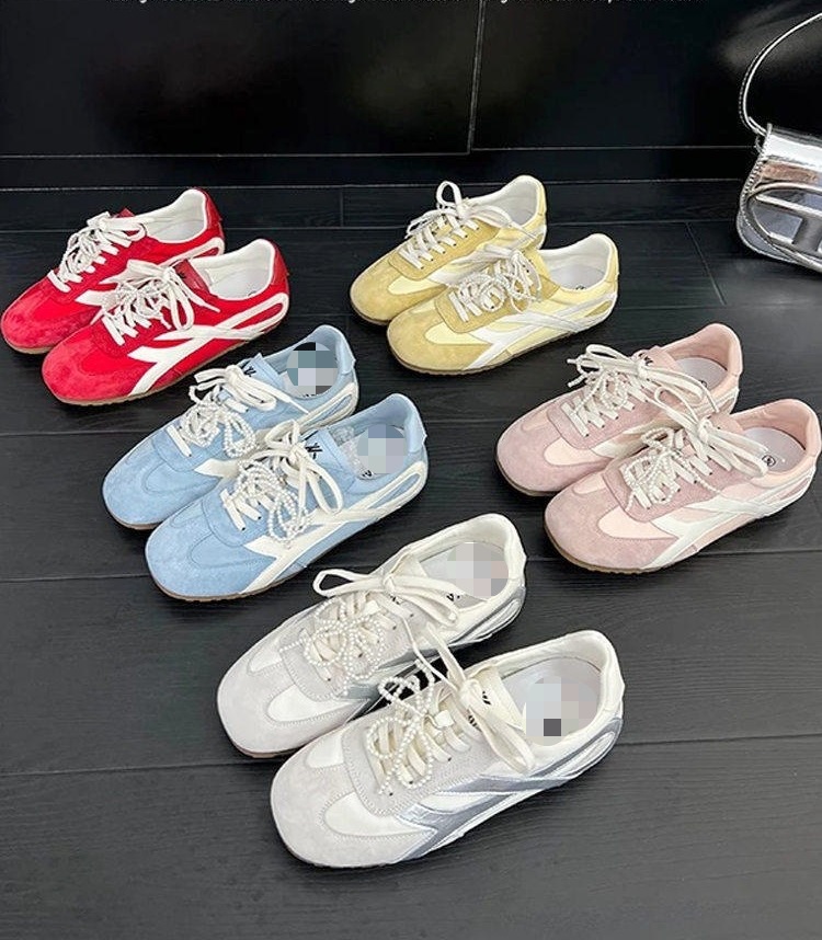 2025 새로운 빈티지 독일 훈련 신발 올 매치 플랫 캐주얼 신발 여성 스포츠 운동화 높이 5cm 통기성 레드스토어 가기