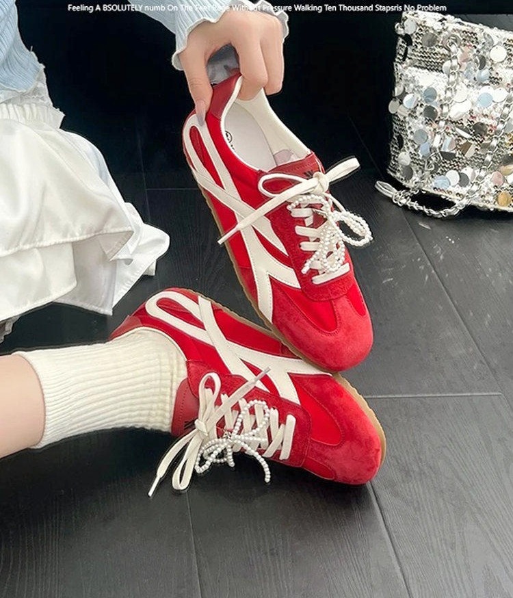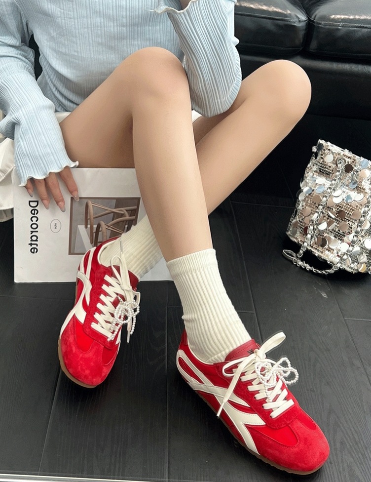 2025 새로운 빈티지 독일 훈련 신발 올 매치 플랫 캐주얼 신발 여성 스포츠 운동화 높이 5cm 통기성 레드