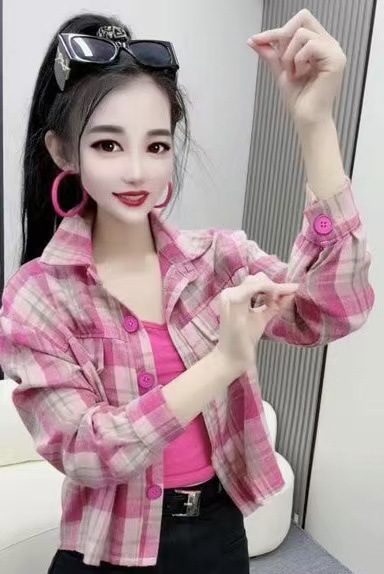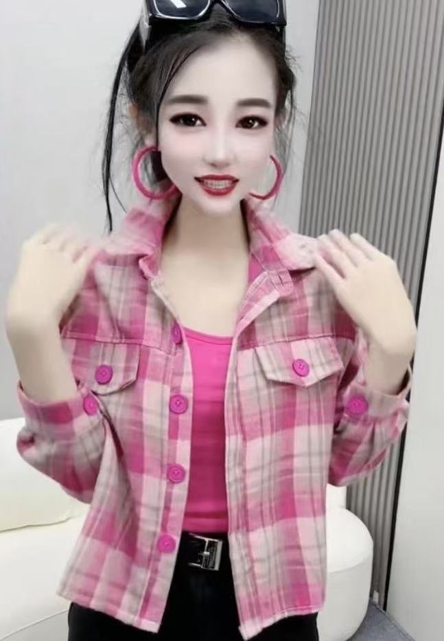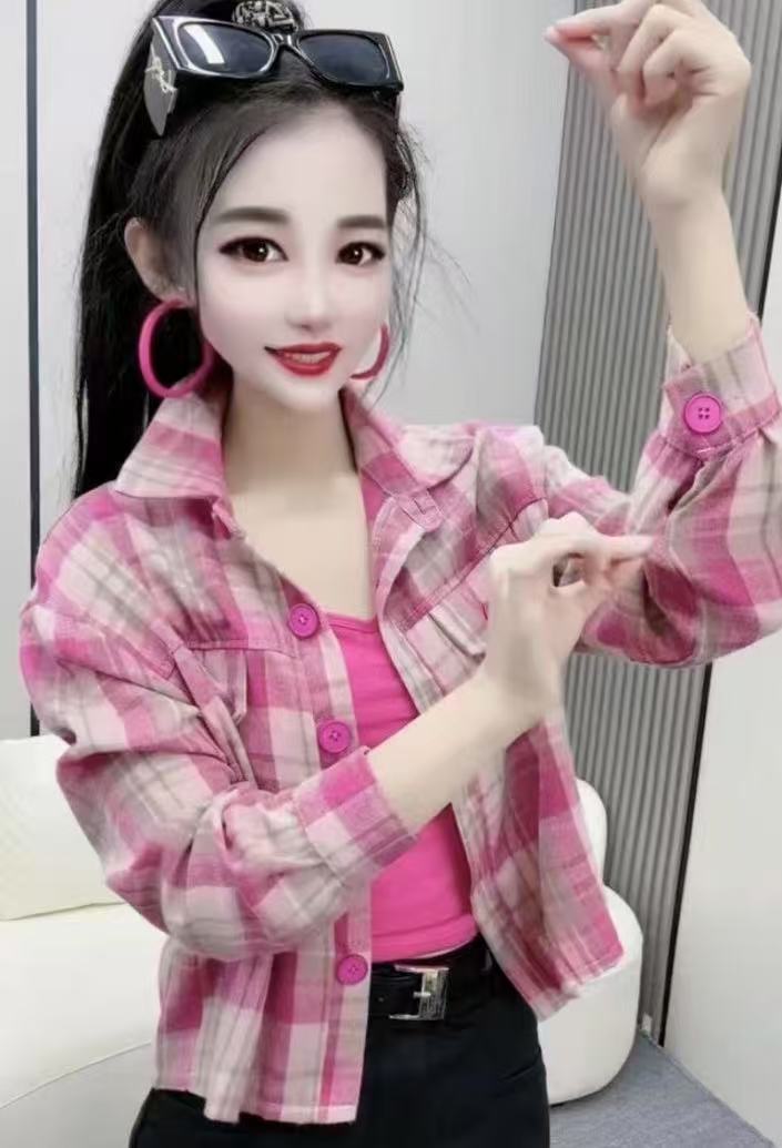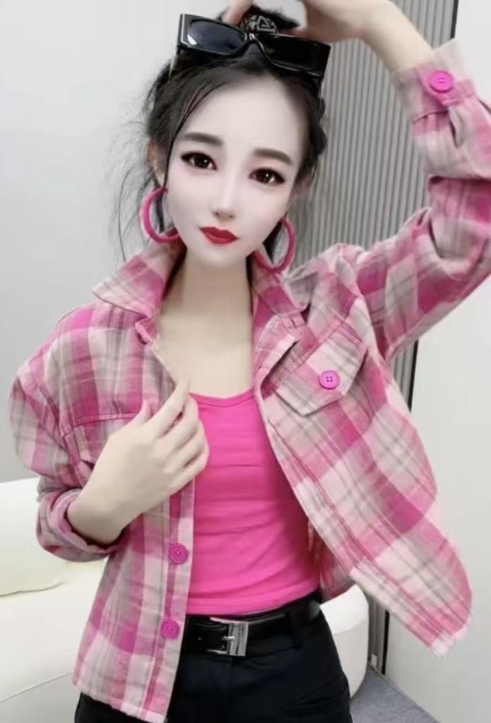 게으른 긴팔 컬러 체크 무늬 셔츠 캐주얼 2025 봄 느슨한 슬리밍 새 셔츠 짧은 재킷스토어 가기