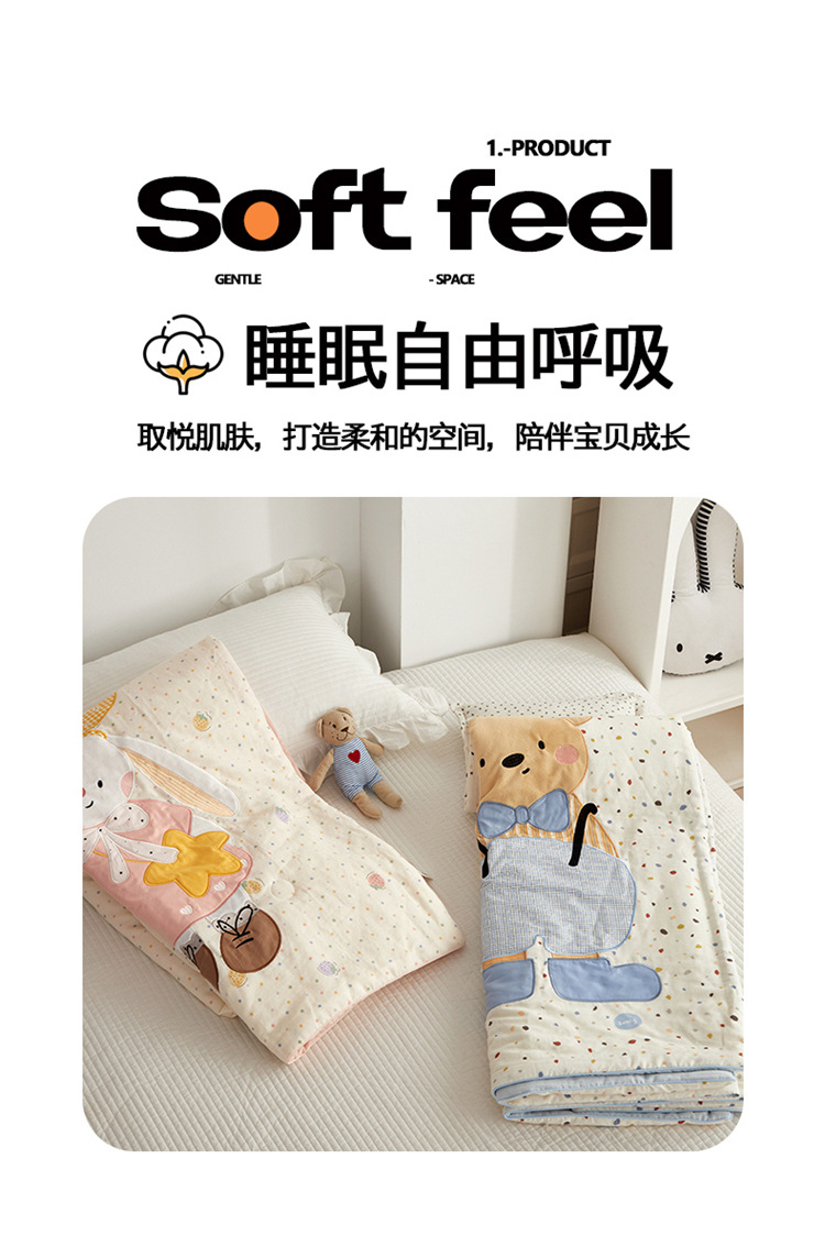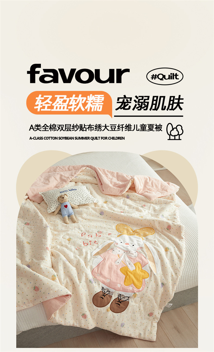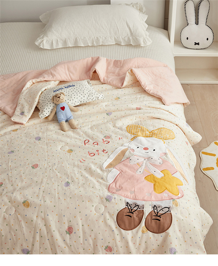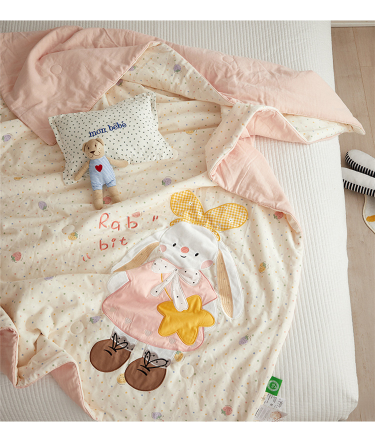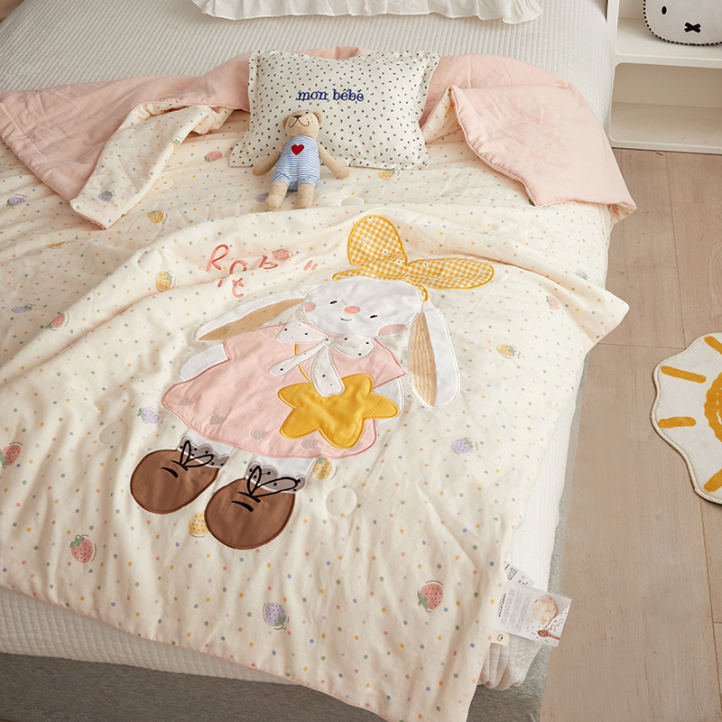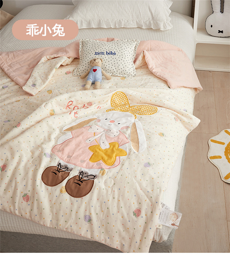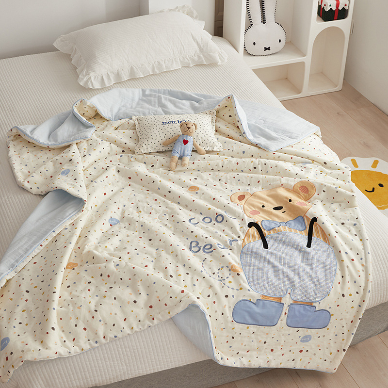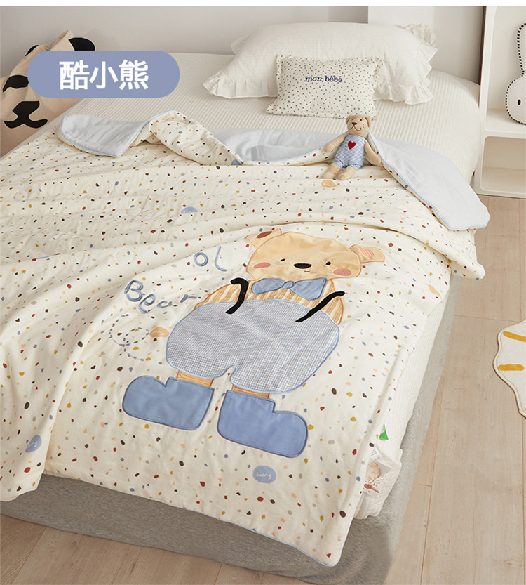도매 여름 어린이 면화 여름 이불 만화 수건 수 놓은 유치원 아기 에어컨 이불 더블 레이어 거즈 콩 이불 코어스토어 가기