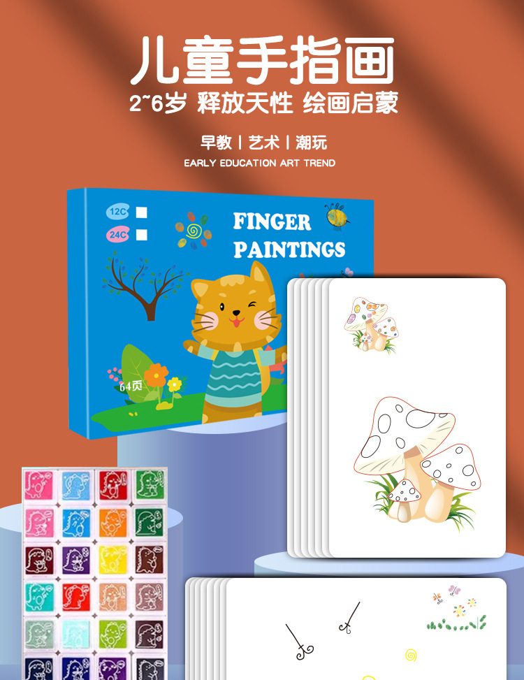 어린 아이들의 휴대용 지문 회화 색칠하기 이 창조적 인 손가락 그림 손가락 핑크 디스크 책 장난감 계몽주의 인식