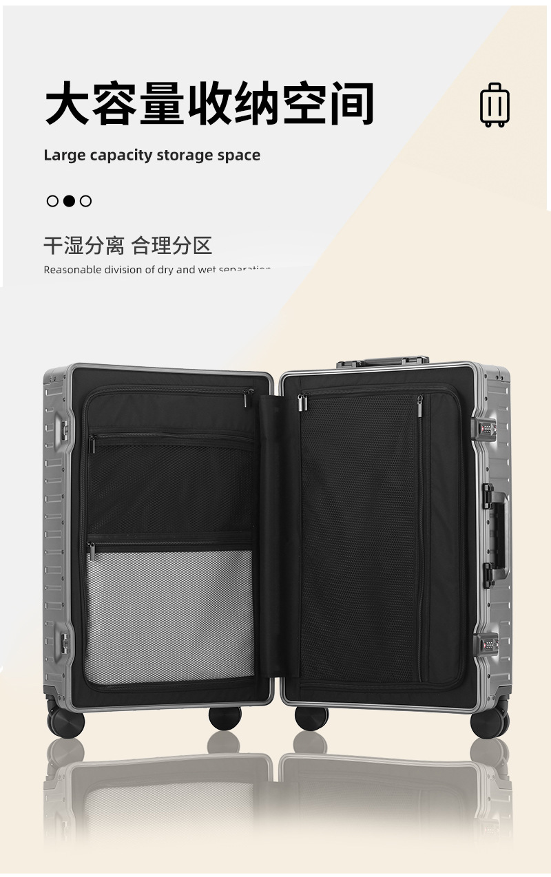 올알루미늄 마그네슘 합금 여행가방, 회전식 바퀴, 여성용 알루미늄 프레임 가방, 20inch 전면 개방 직각 여행가방, 24inch 원피스 배송스토어 가기