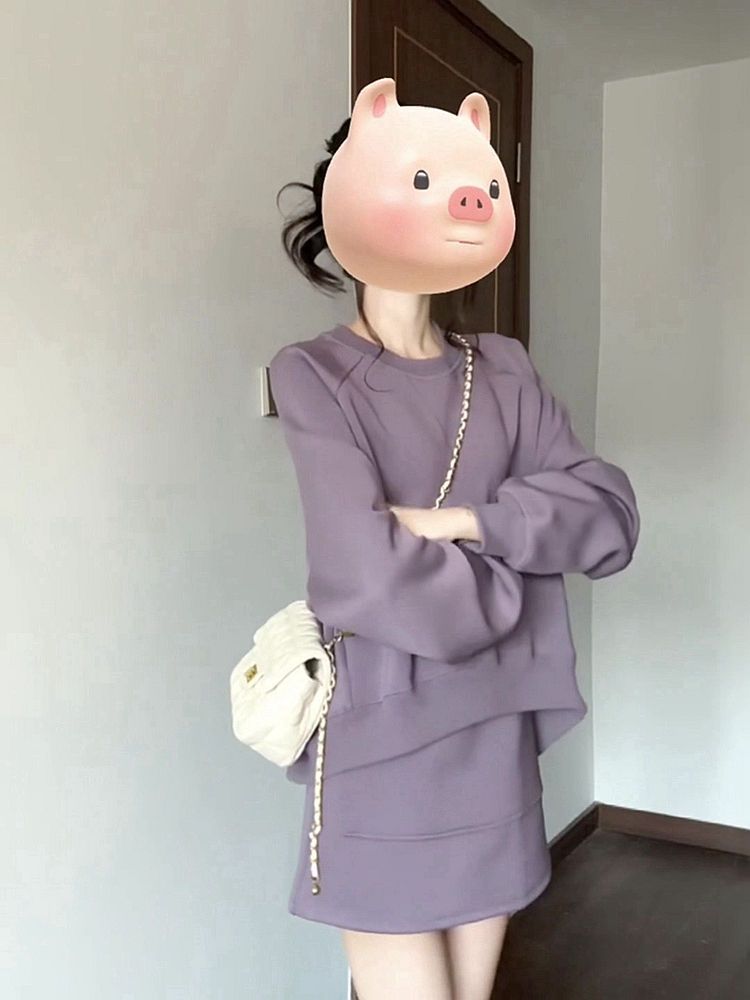 Fat mm 특대 사이즈 150kg 봄, 가을 스웨트 슈트 여성 패션 게으른 스타일 탑 스커트 투피스 트렌디 세트