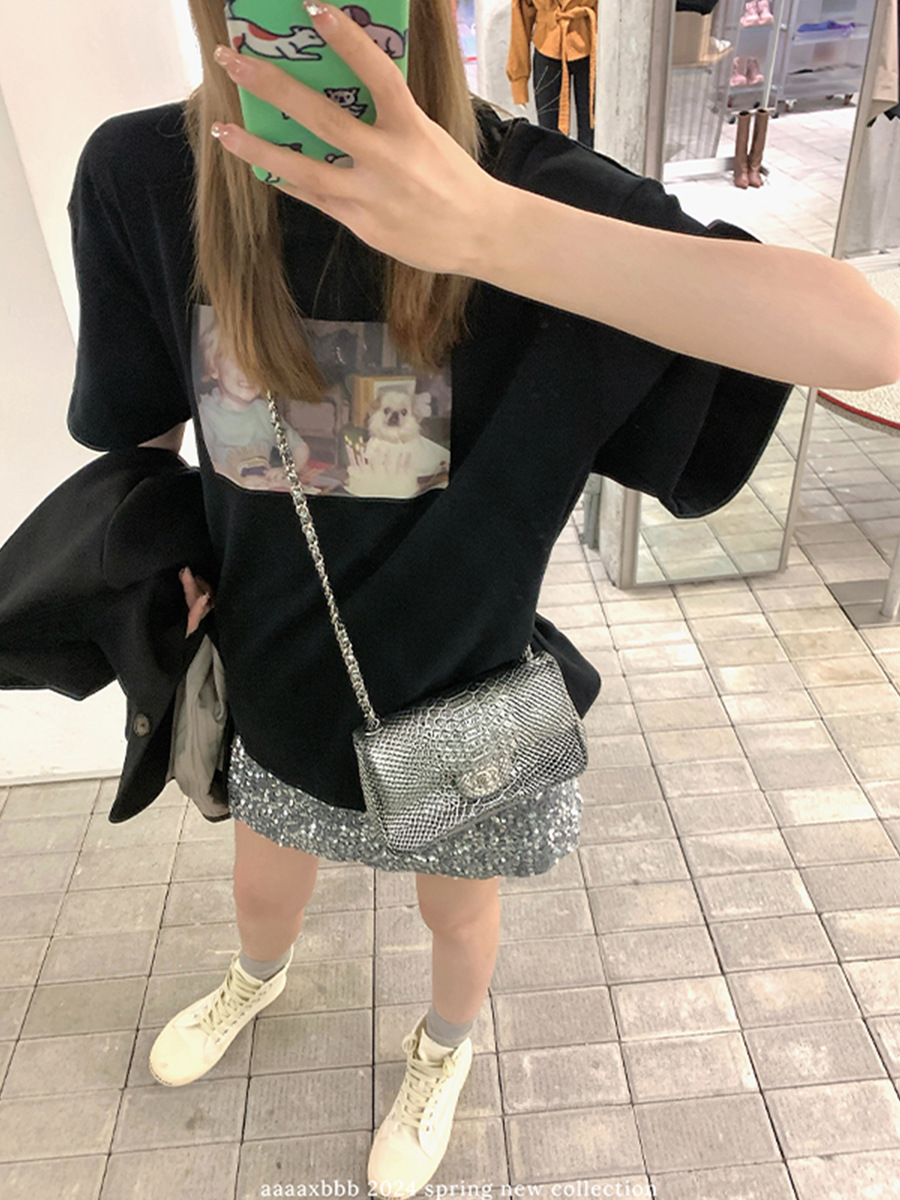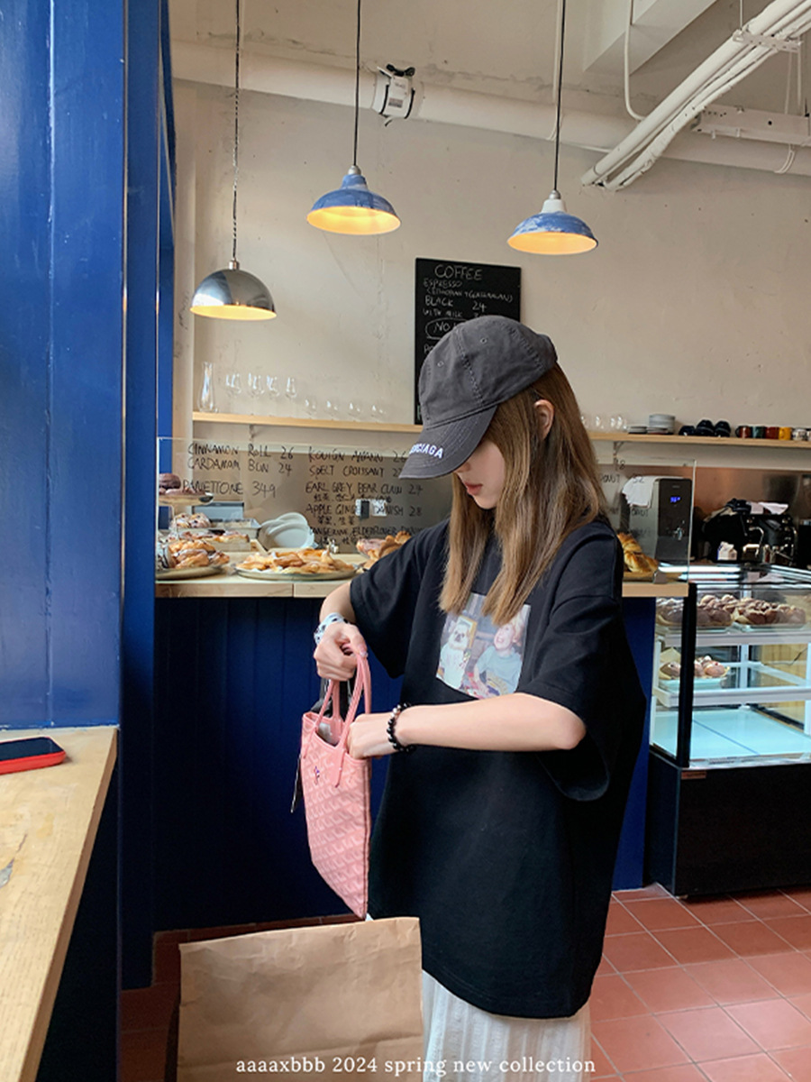 Aaaaxbbb Nine-Cm 안개 3 색 면 인쇄 티셔츠 반소매 올 매치 느슨한 피부 친화적 인 내부 상단스토어 가기