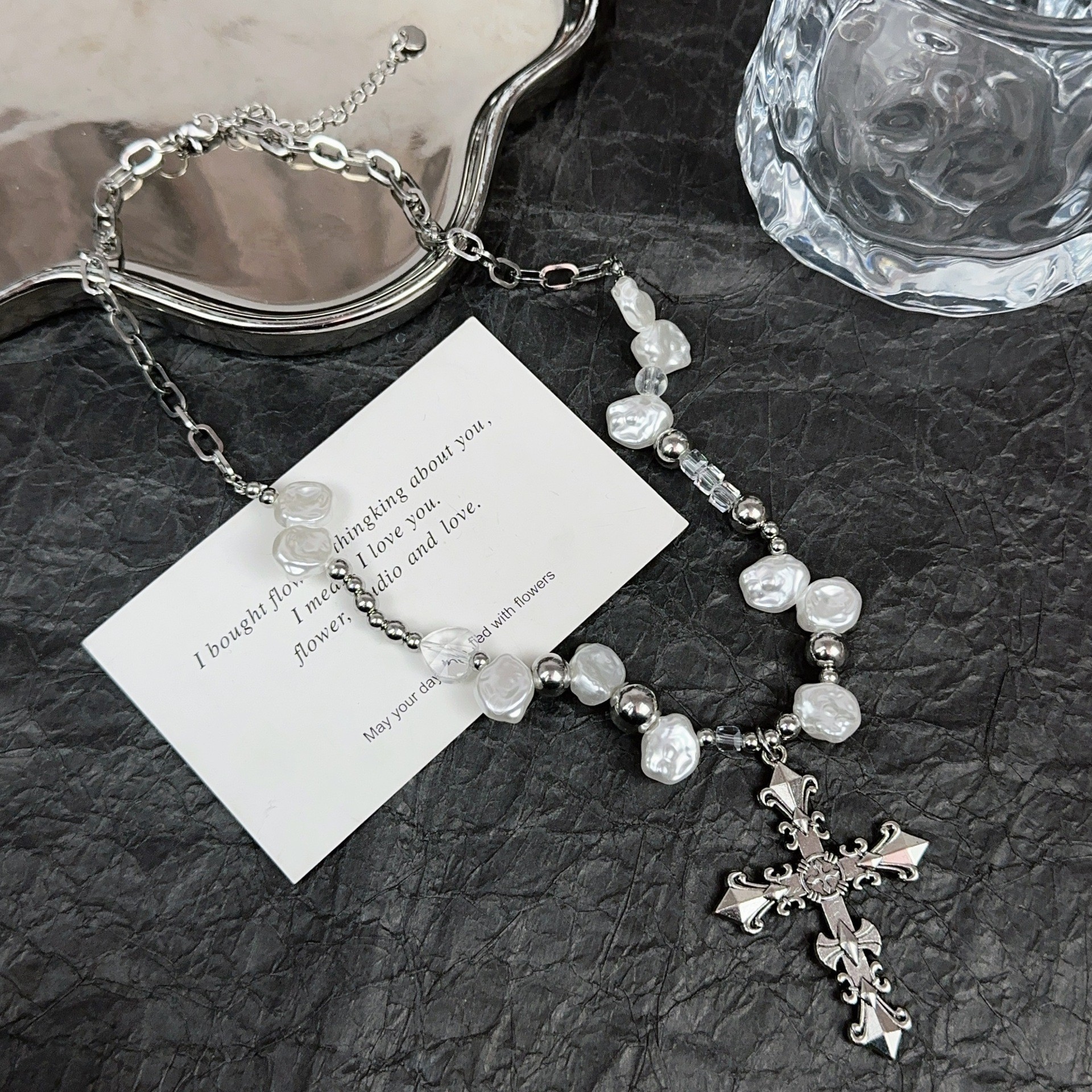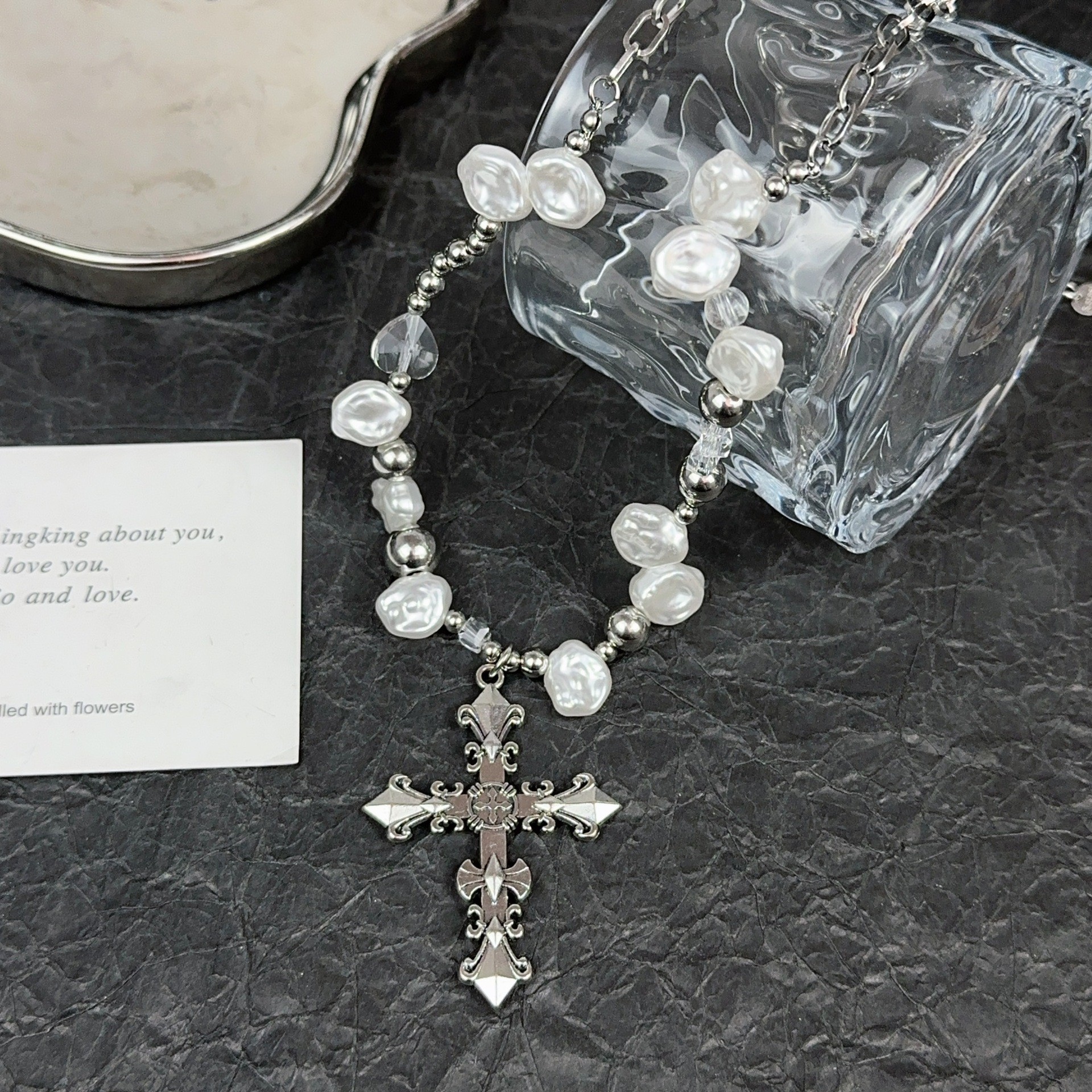 크로스 진주 목걸이 밀레니엄 스파이스 미국 고딕 달콤한 시원한 아시아 문화 틈새 레트로 펑크 달콤한 멋진 목걸이스토어 가기