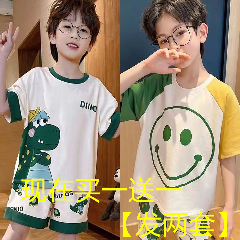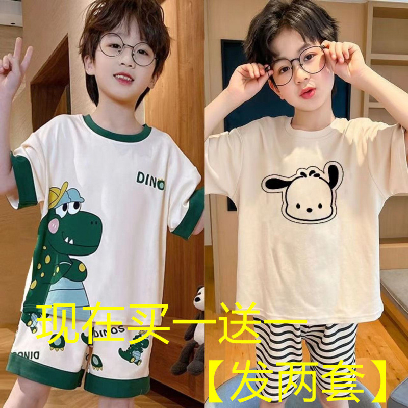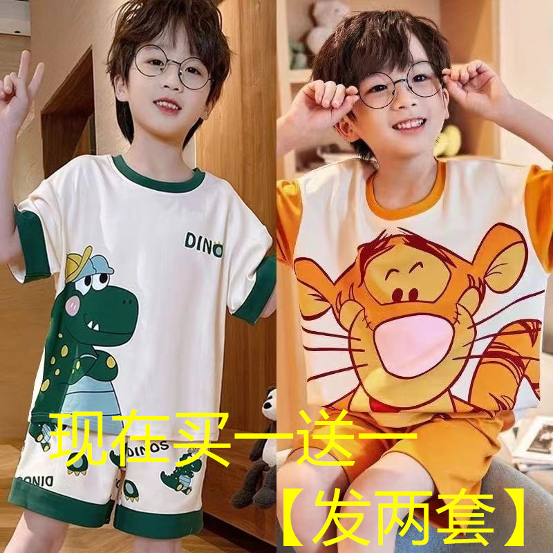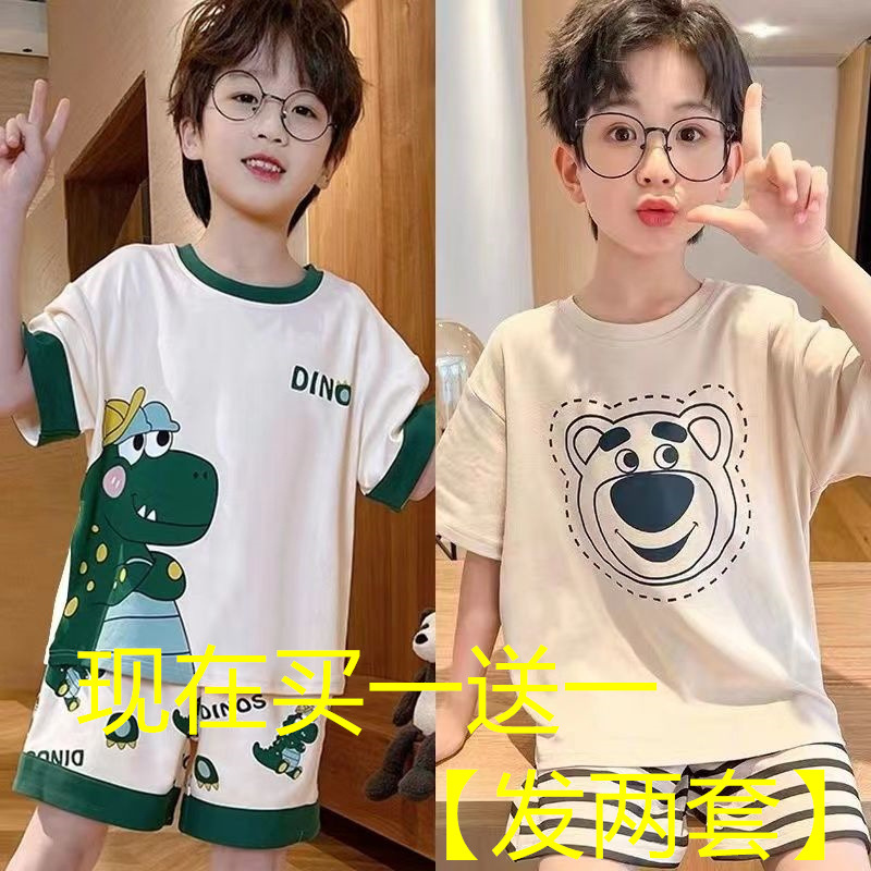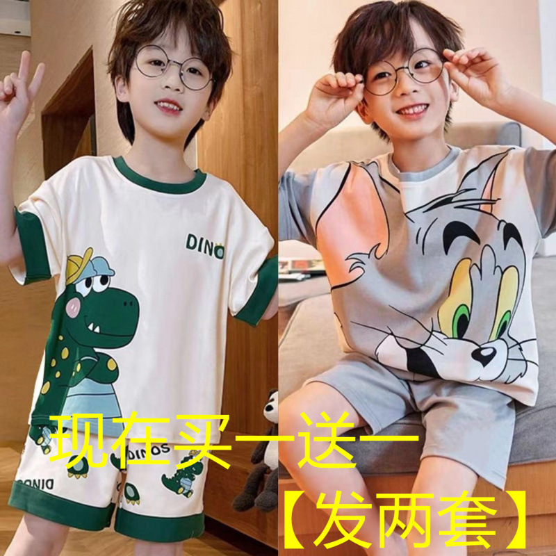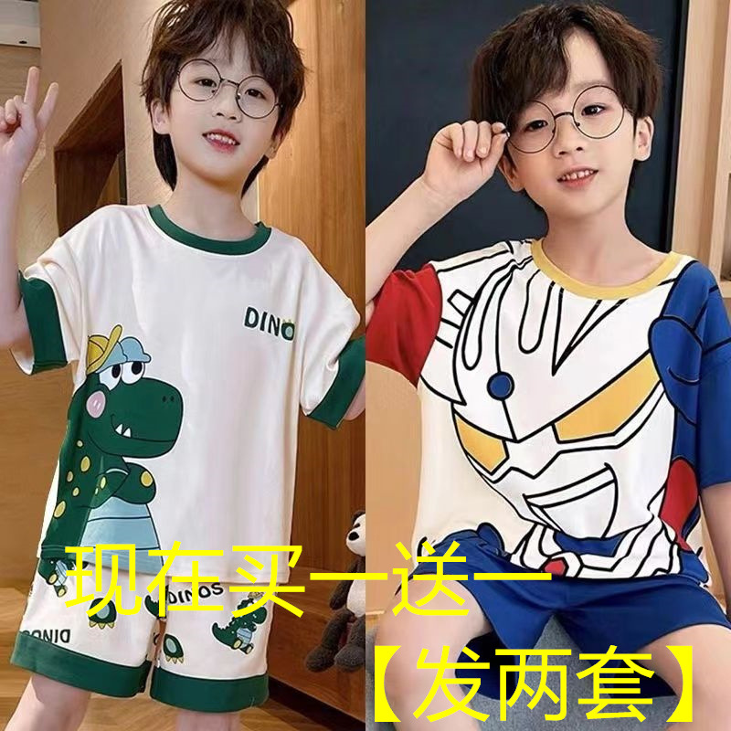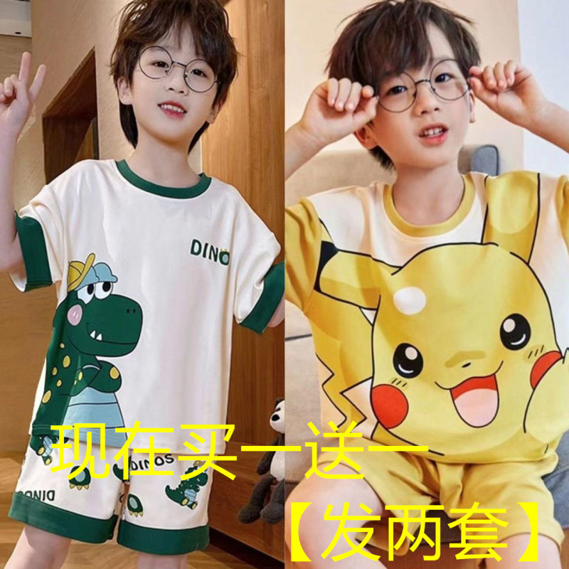 구매 하나 하나 얻을 하나의 어린이 잠옷 소년 여름 얇은 반팔 반바지 투피스 세트 만화 느슨한 홈 의류 세트