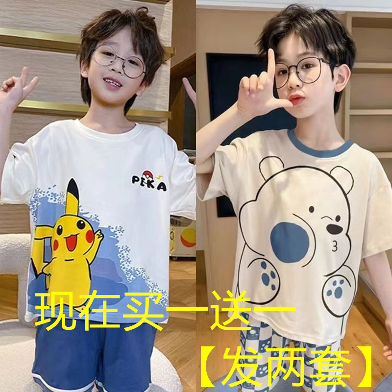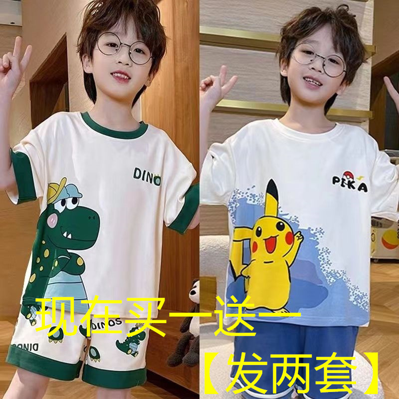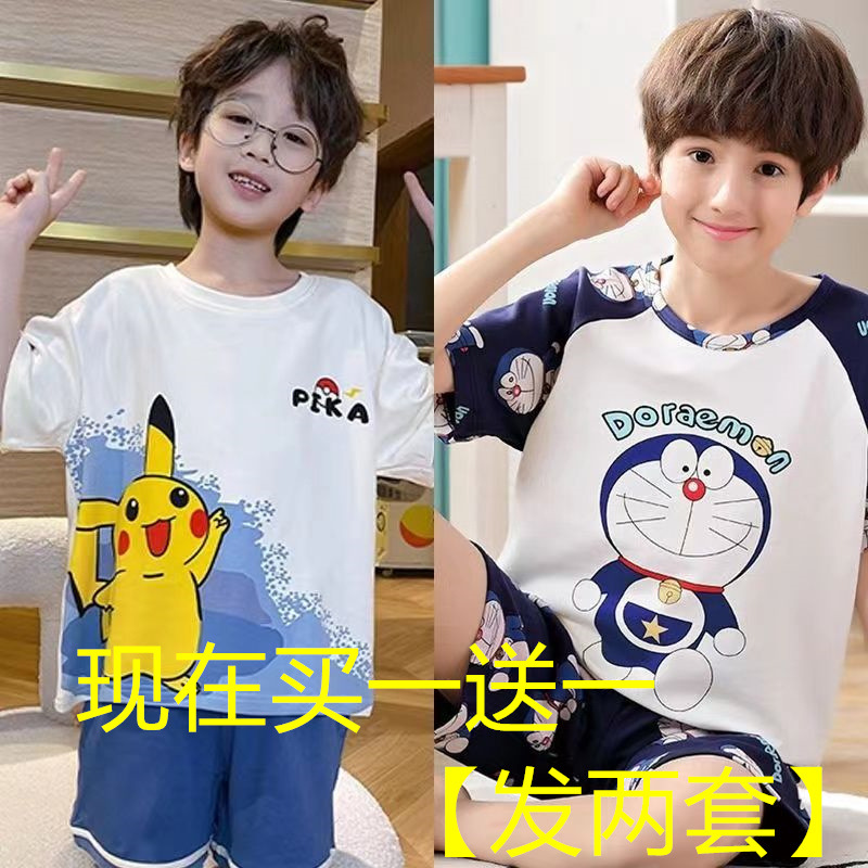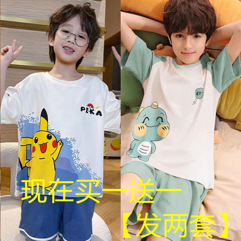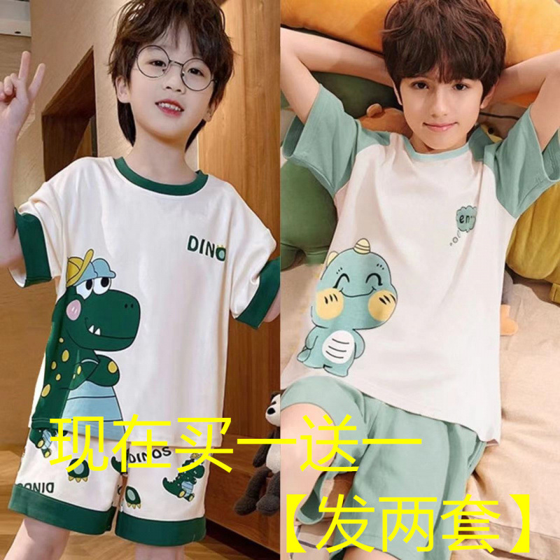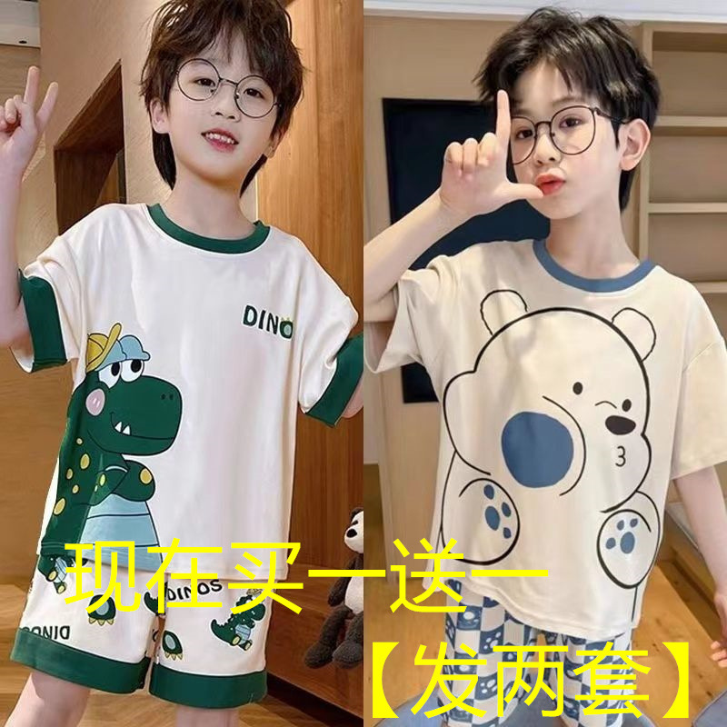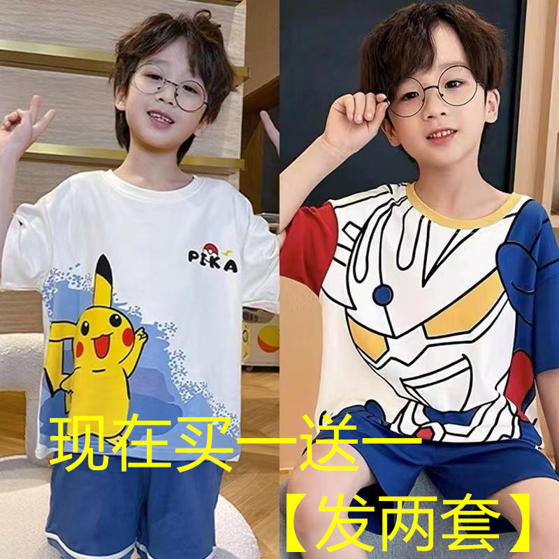 구매 하나 하나 얻을 하나의 어린이 잠옷 소년 여름 얇은 반팔 반바지 투피스 세트 만화 느슨한 홈 의류 세트