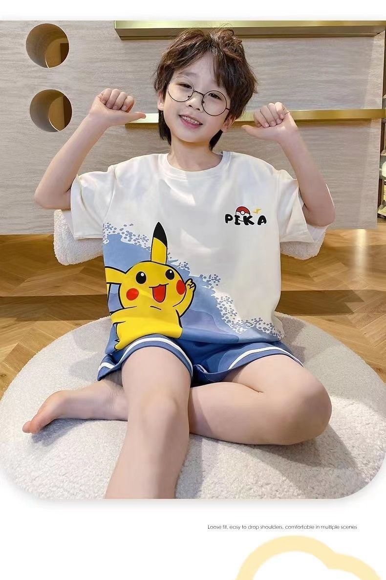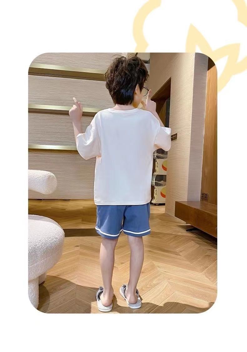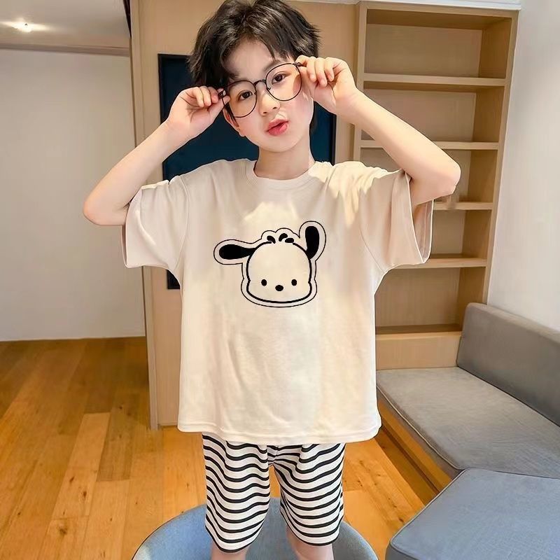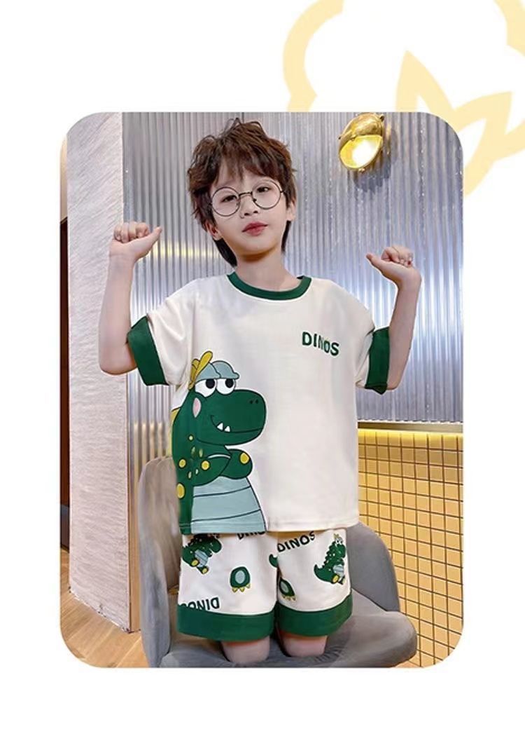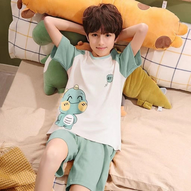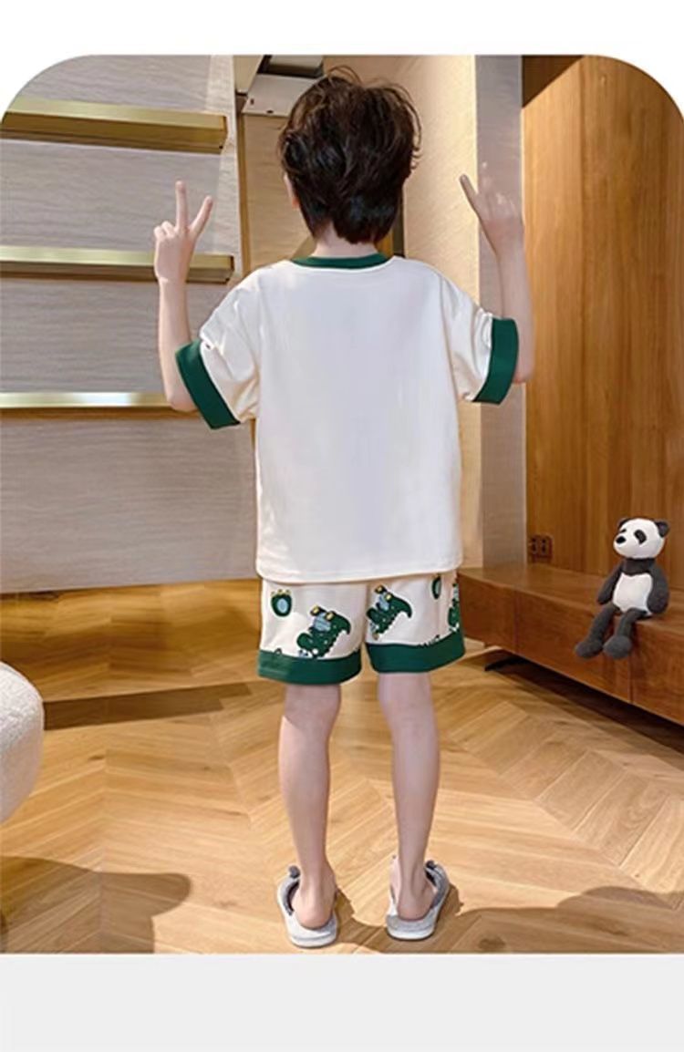 구매 하나 하나 얻을 하나의 어린이 잠옷 소년 여름 얇은 반팔 반바지 투피스 세트 만화 느슨한 홈 의류 세트