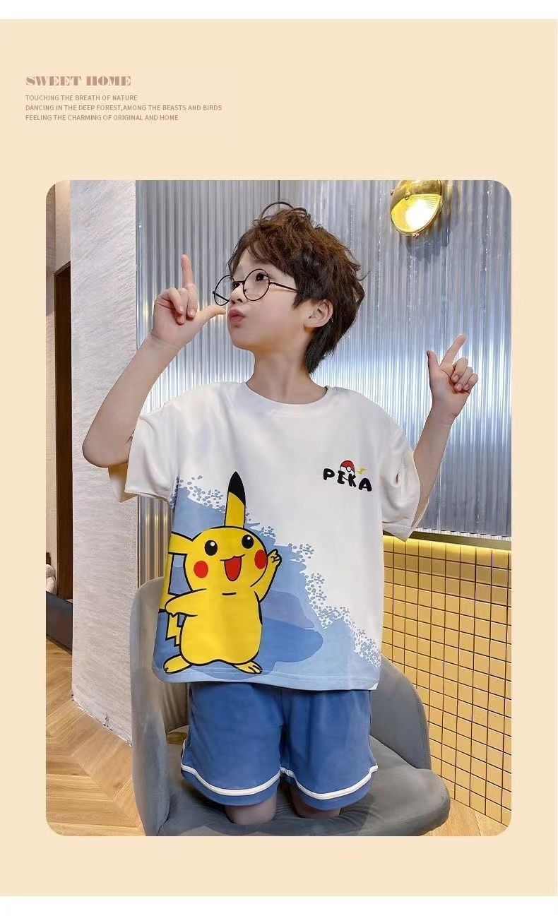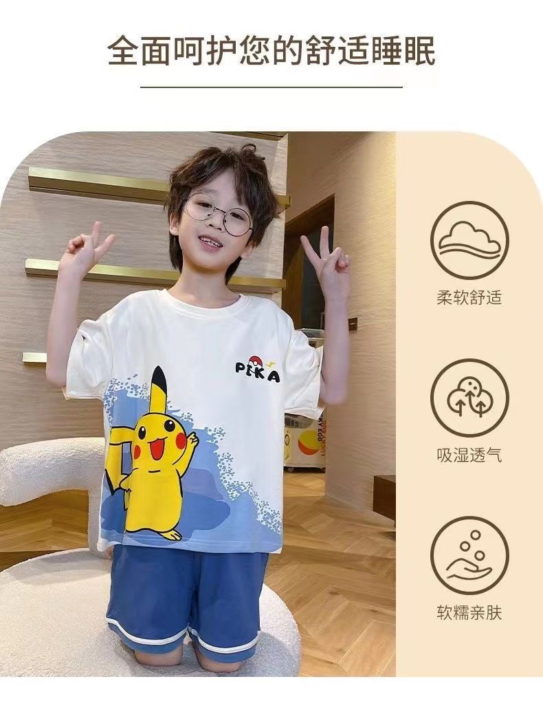 구매 하나 하나 얻을 하나의 어린이 잠옷 소년 여름 얇은 반팔 반바지 투피스 세트 만화 느슨한 홈 의류 세트스토어 가기