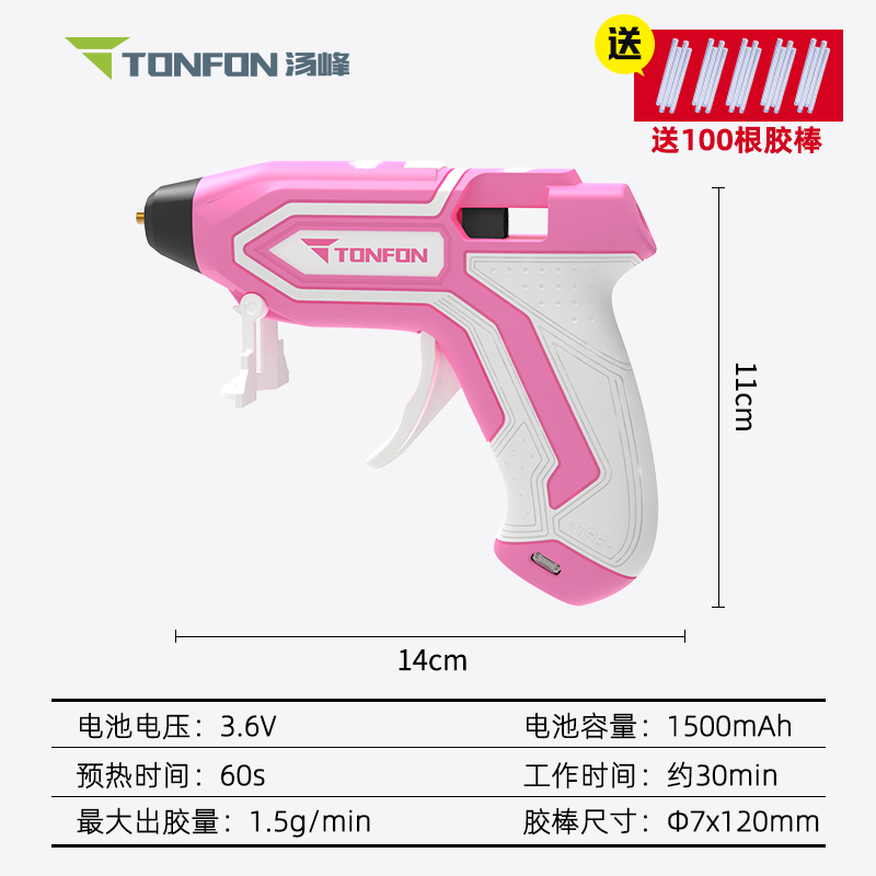 • aa 독일 품질 핑크 3.6V 무선 글루건(핫멜트 글루스틱 100개 포함)