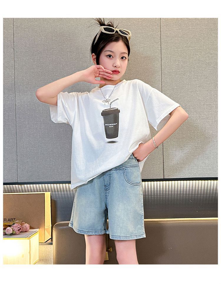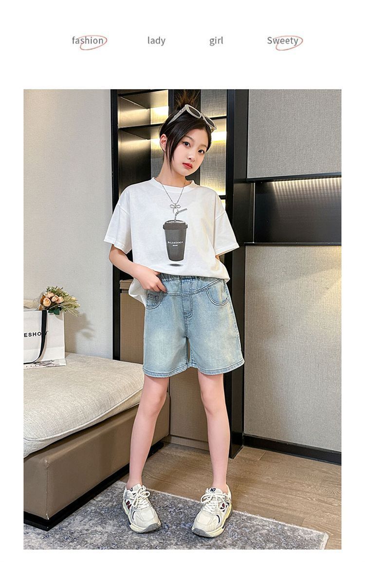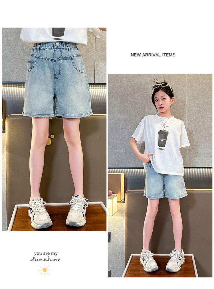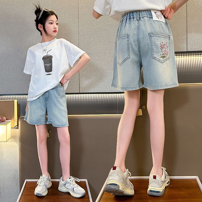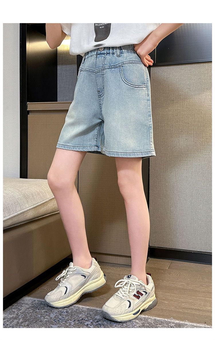 재고 아동복 소녀 데님 반바지 2025 새로운 대형 어린이 아기 겉옷 짧은 바지 도매 대외 무역 조수