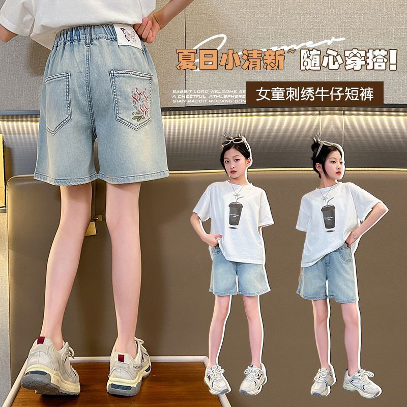 재고 아동복 소녀 데님 반바지 2025 새로운 대형 어린이 아기 겉옷 짧은 바지 도매 대외 무역 조수스토어 가기