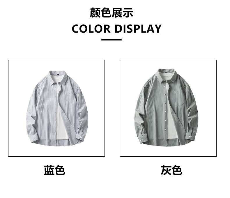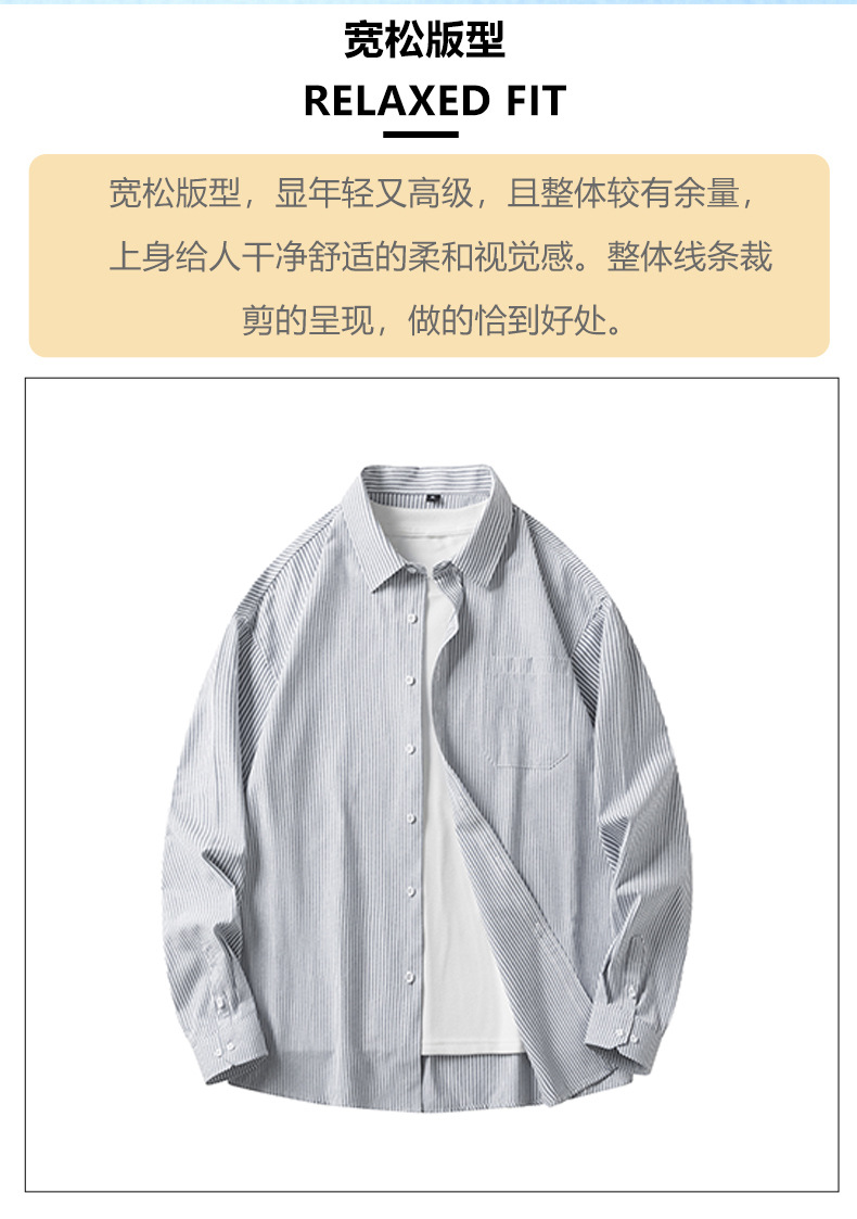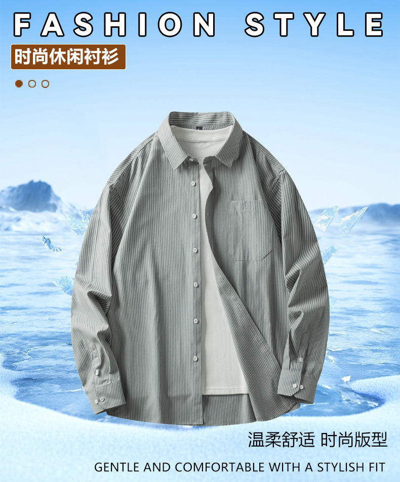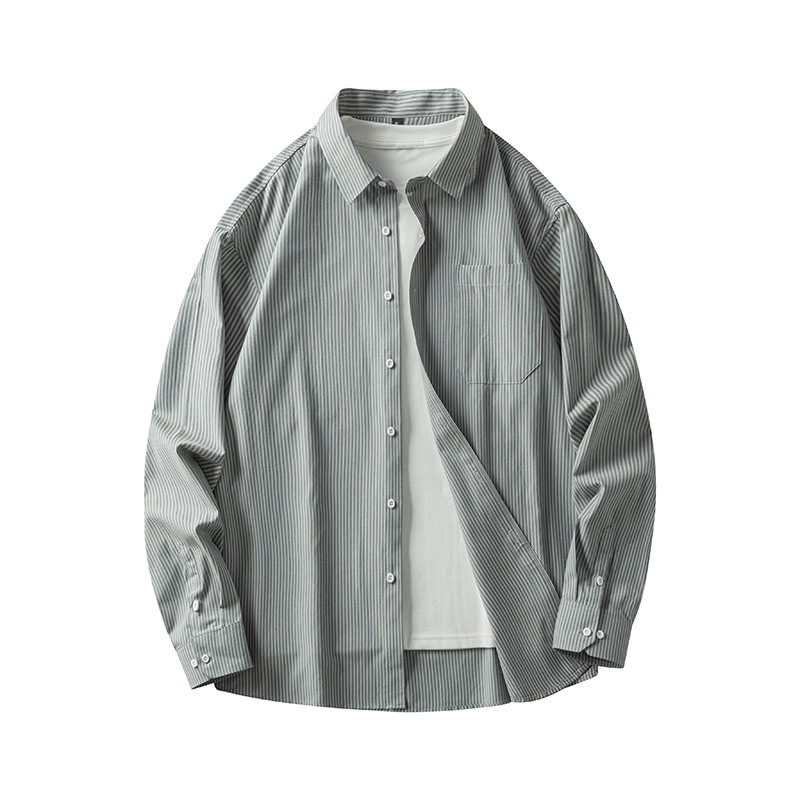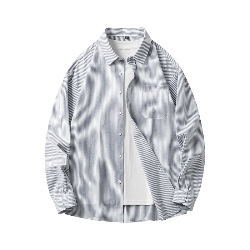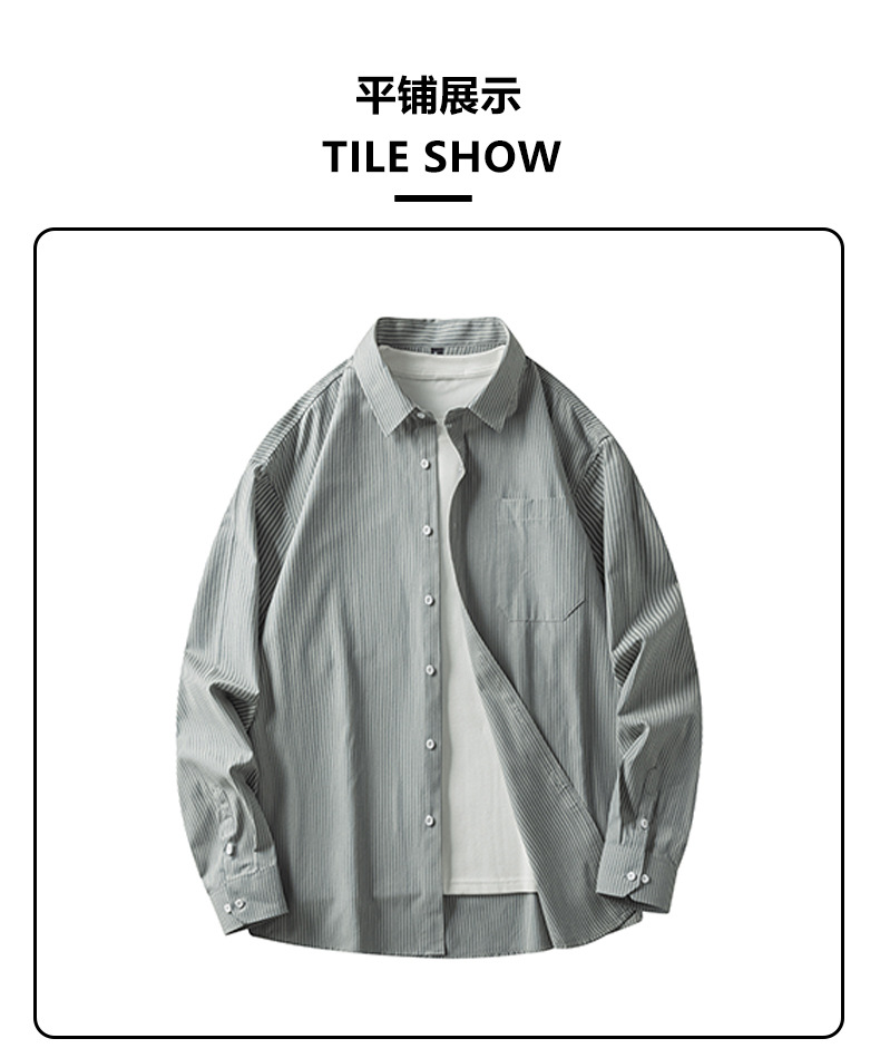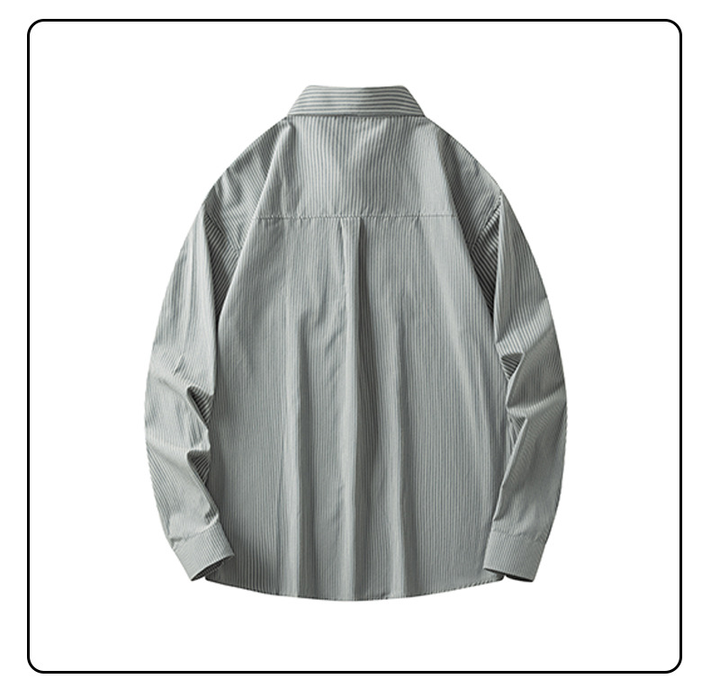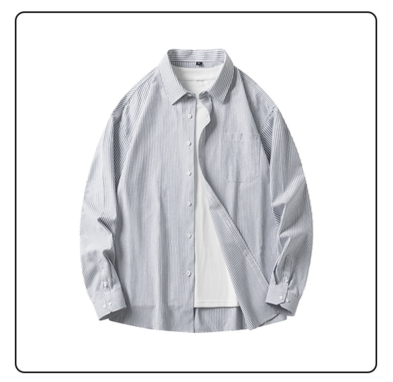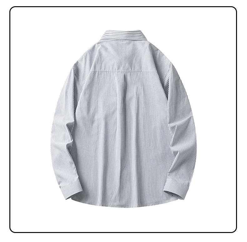 무료 배송 2024 트렌디 신작 가을 스타일(국경 간 공급) 트렌디 루즈핏 스트라이프 셔츠 남성 캐주얼 롱스토어 가기