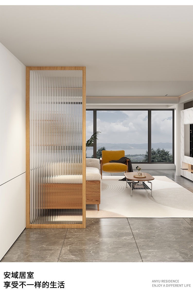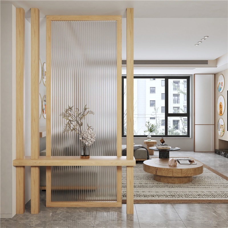 일본식 솔리드 우드 스크린 강화 창홍 유리 파티션 물 패턴 북유럽 창조적 인 입구 레스토랑 통나무 대피소스토어 가기