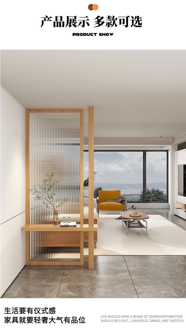 일본식 솔리드 우드 스크린 강화 창홍 유리 파티션 물 패턴 북유럽 창조적 인 입구 레스토랑 통나무 대피소