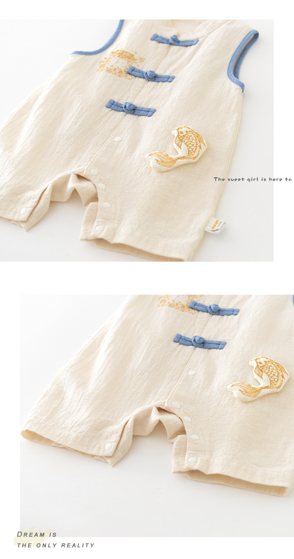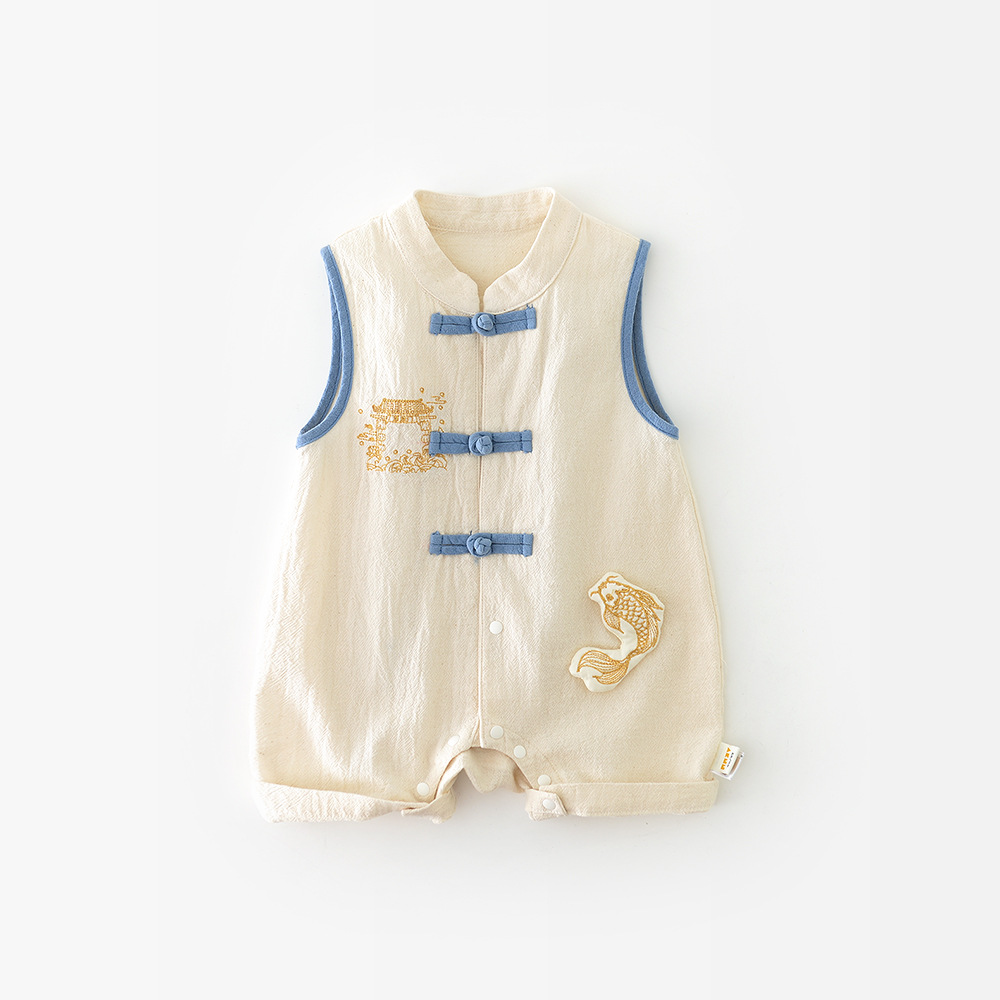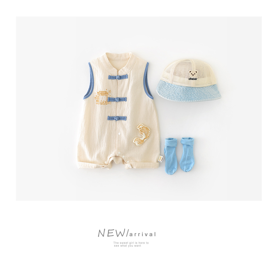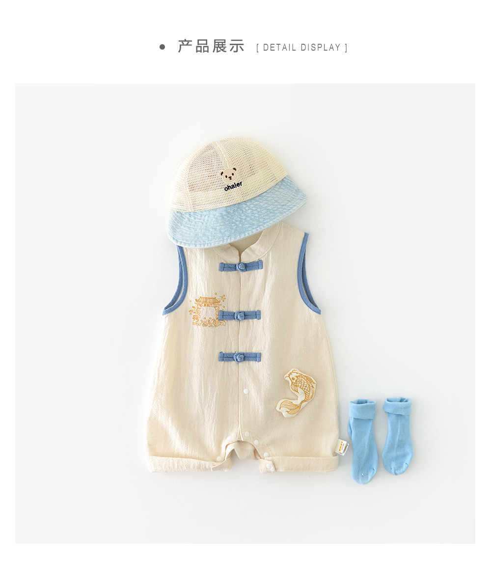 2025 년 서머 뉴 보이즈 '중국식 코이 클라이밍 세트 신생아 버클 골동품 점프 수트 52962