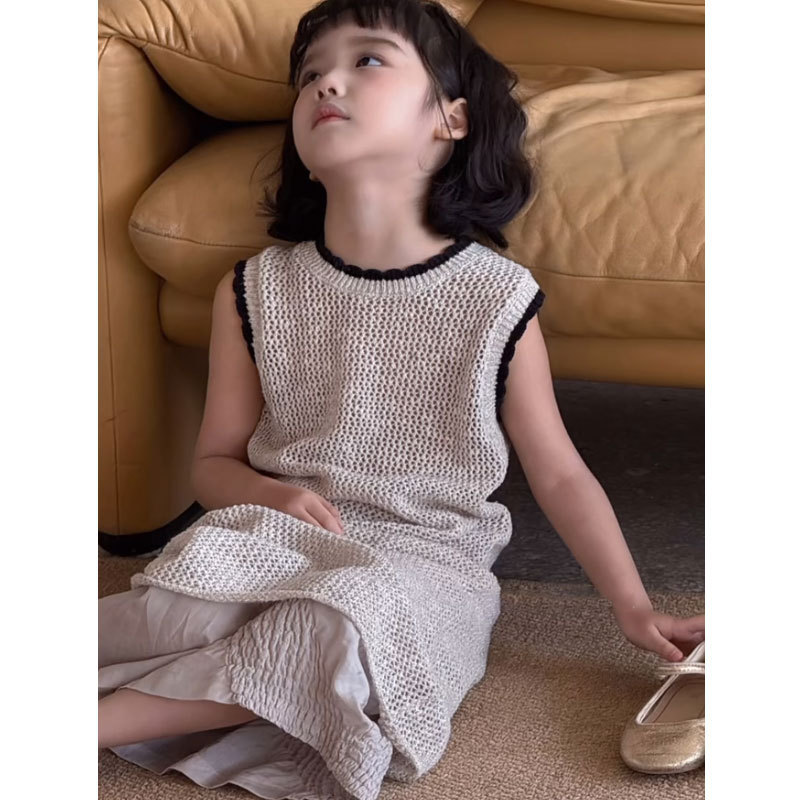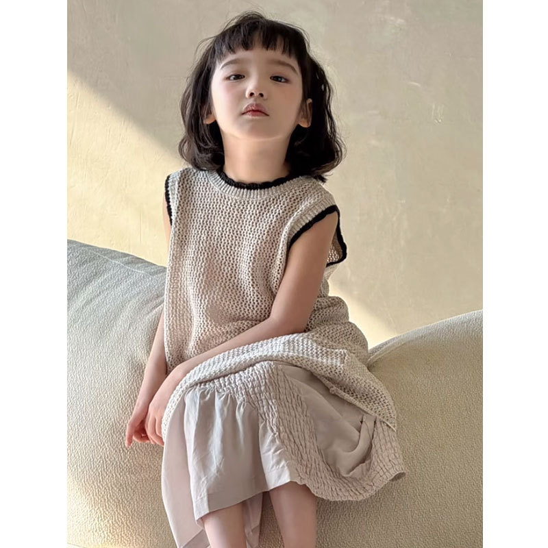 소녀 원피스 어린이 치마 여름 2025 새로운 큰 어린이 스택 빅 스커트 아기의 하이 엔드 얇은스토어 가기