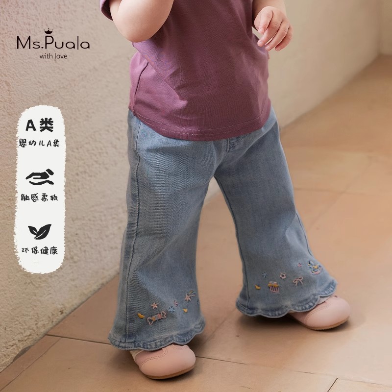 여아 바지 편안한 2025 신상 아기 캐주얼 바지 어린이 패션 플레어 팬츠 봄 가을 아동 청바지스토어 가기