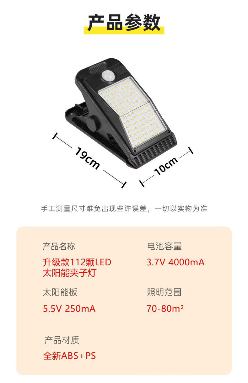 ♔새로운 태양 휴대용 클립 램프 112LED 야외 안뜰 인체 유도 조명 정원 테라스 울타리