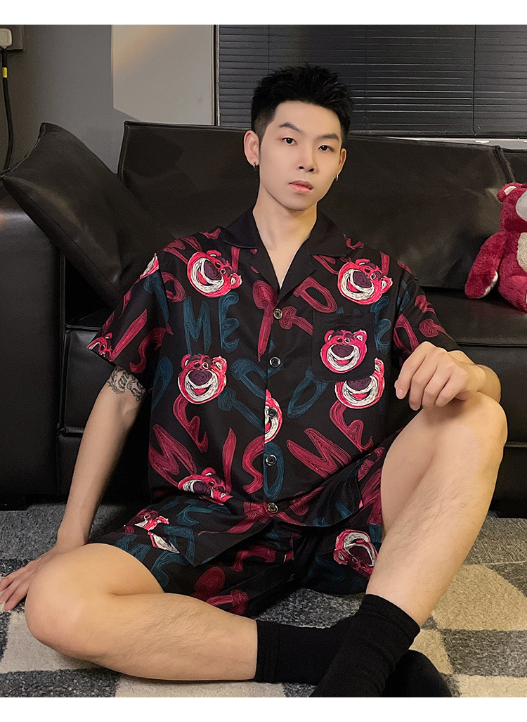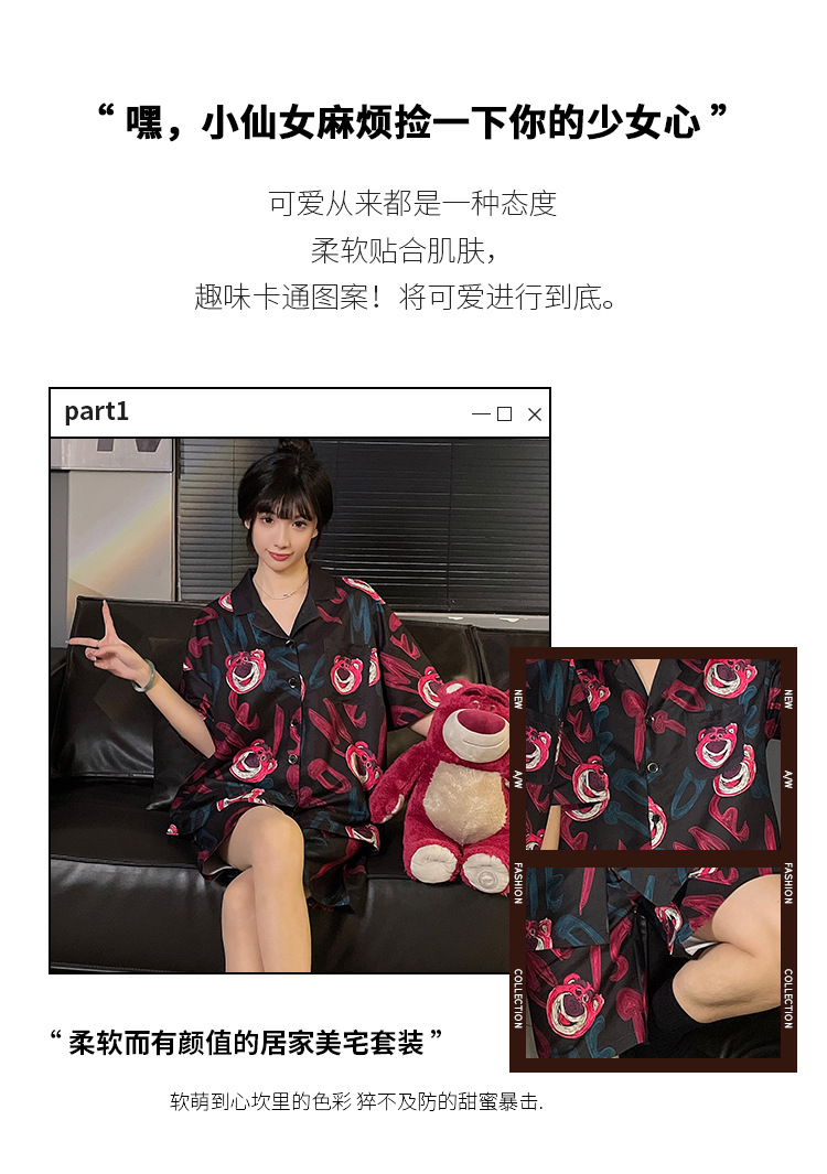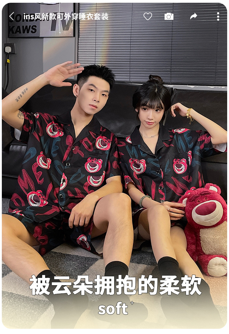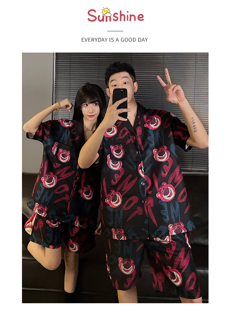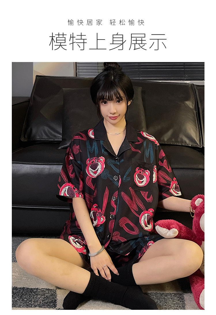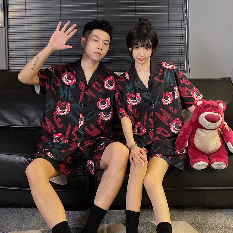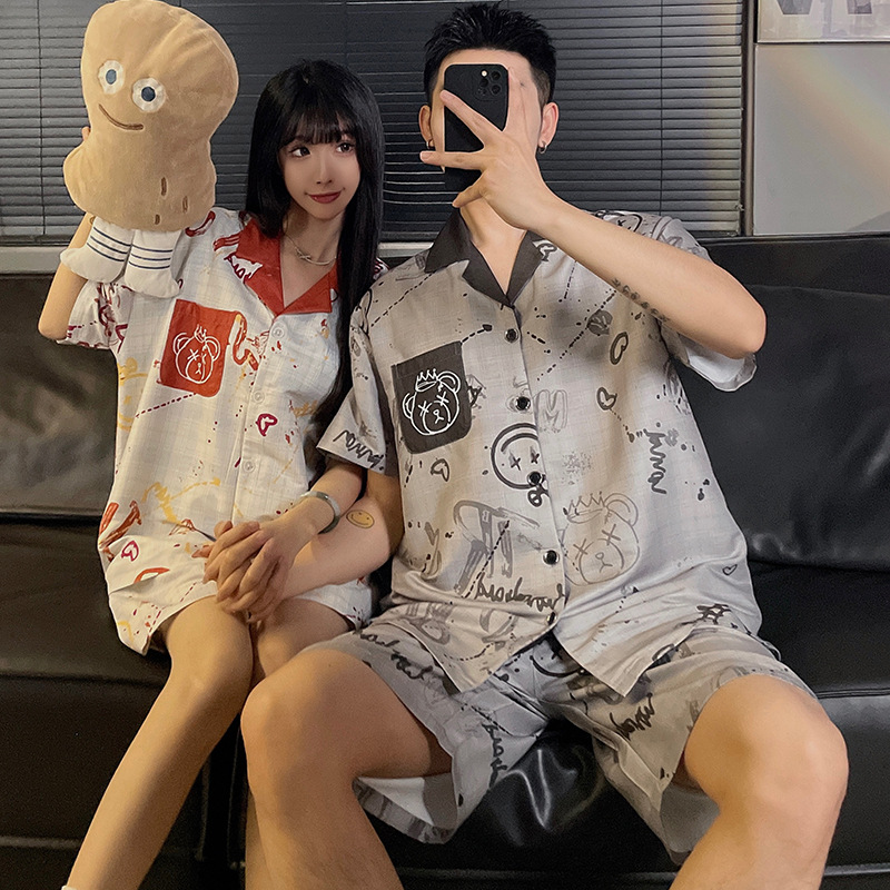 커플 잠옷 여성 반팔 반바지 봄과 여름 구름 면화 카디건 소년 만화 청소년 가정 의류 2025 스타일스토어 가기