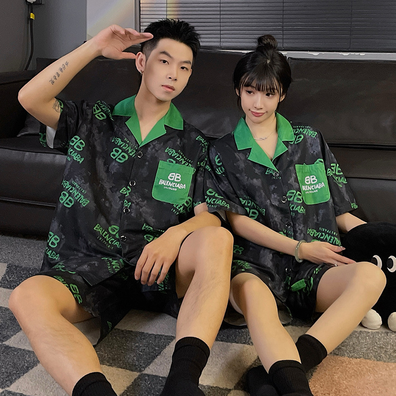 커플 잠옷 여성 반팔 반바지 봄과 여름 구름 면화 카디건 소년 만화 청소년 가정 의류 2025 스타일