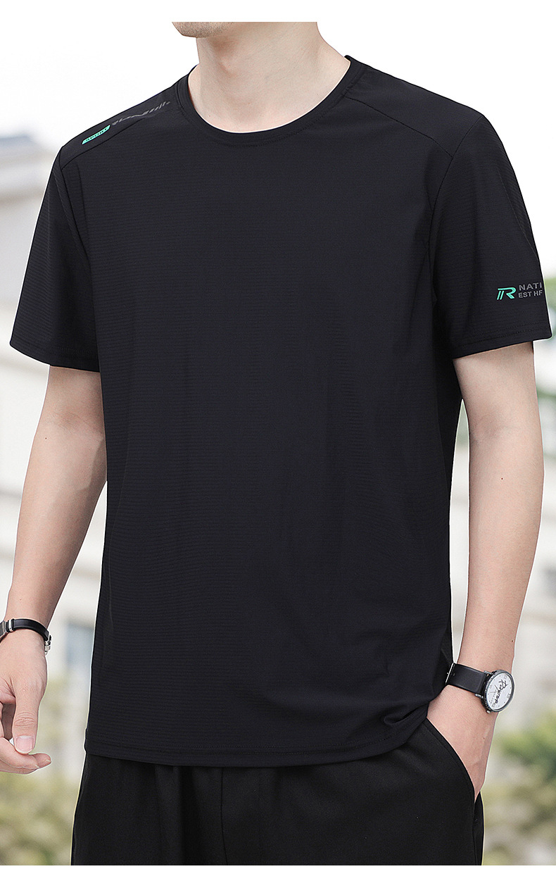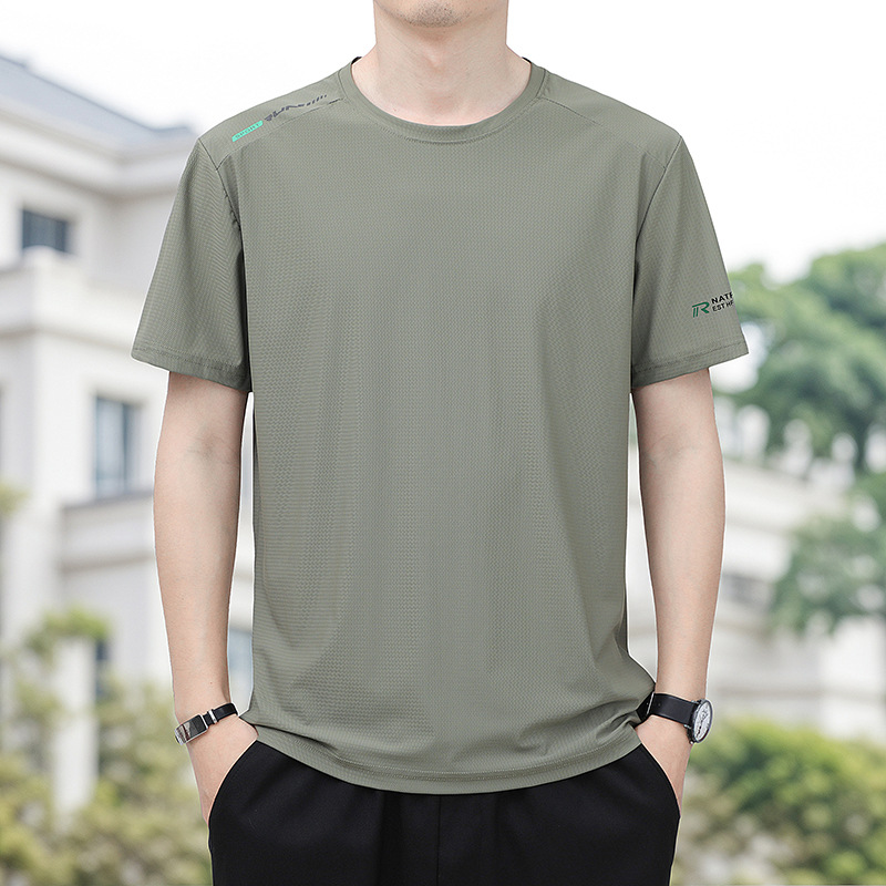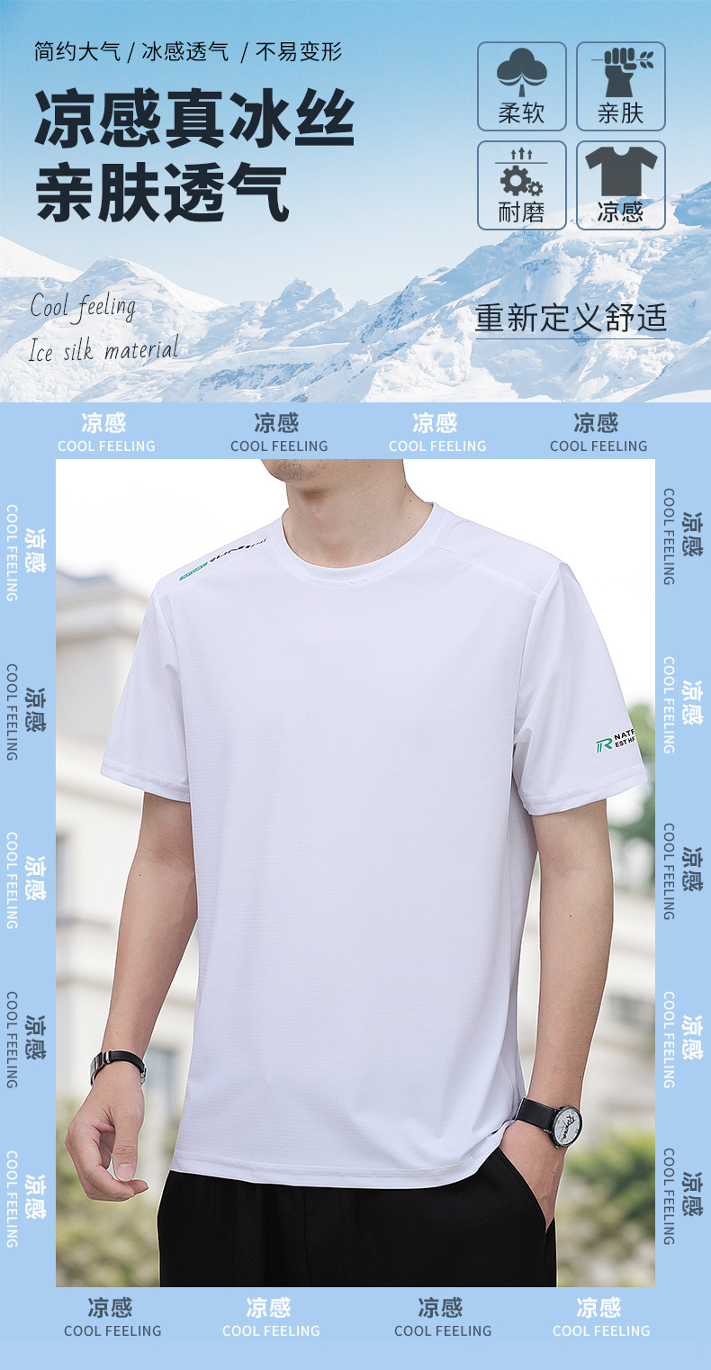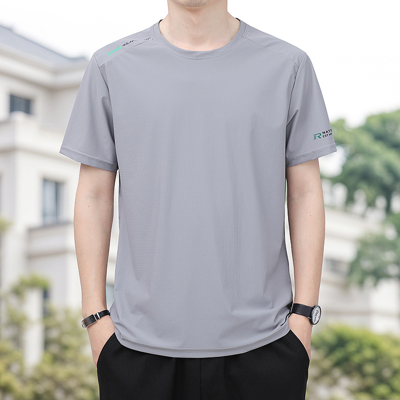 아이스 실크 반팔 티셔츠 남자 여름 얇은 통기성 빠른 건조 스포츠 반팔 티셔츠 느슨한 플러스 사이즈 캐주얼 탑 옷