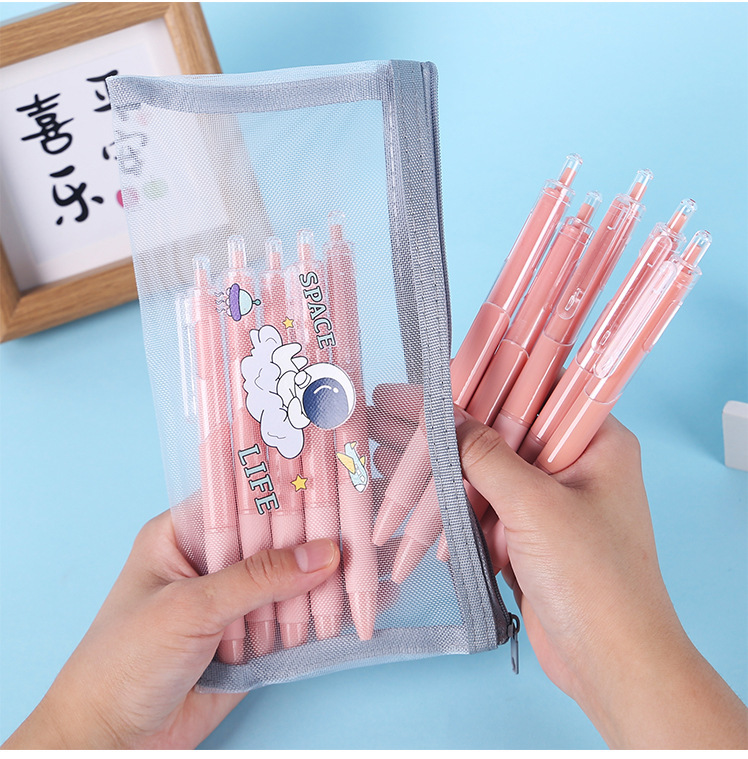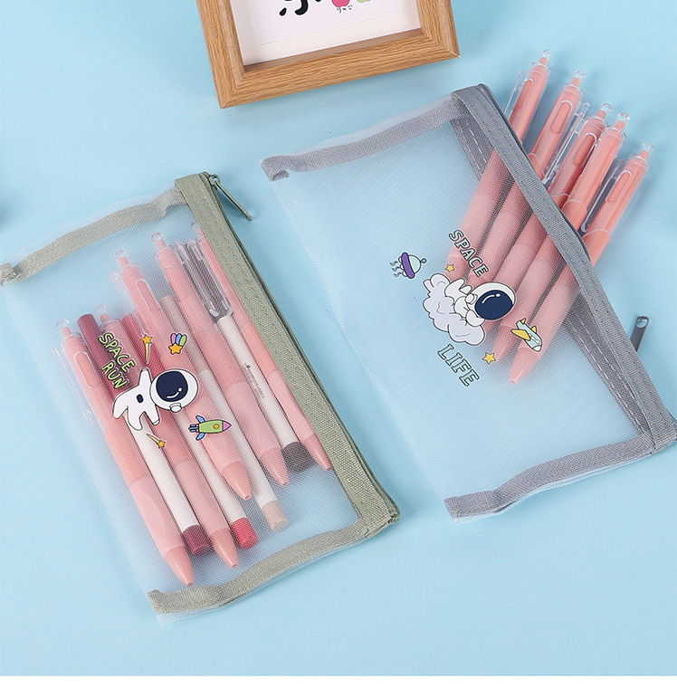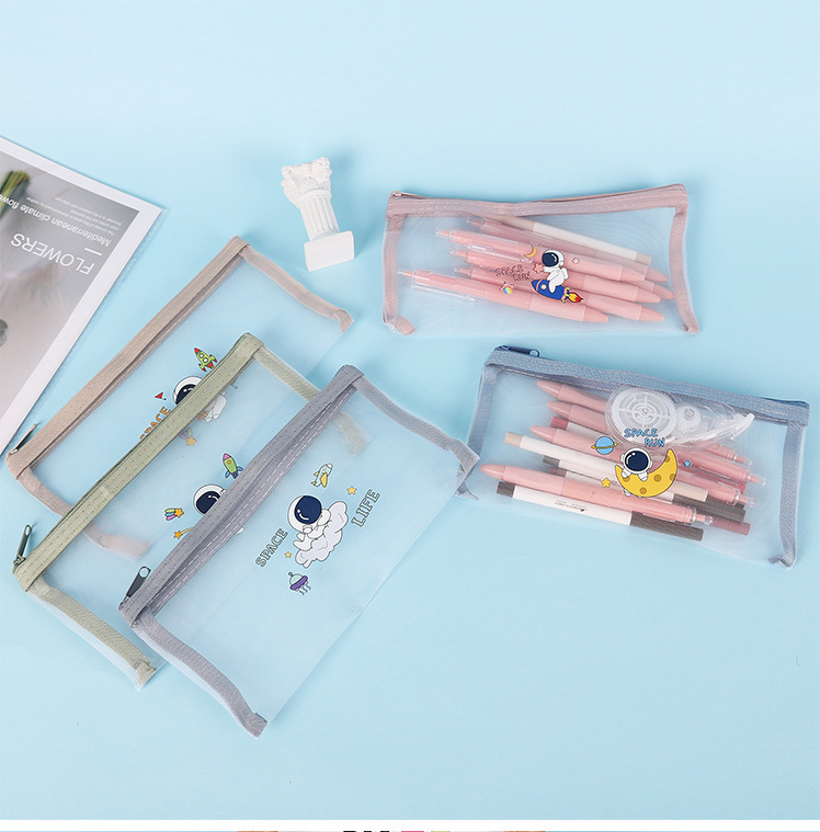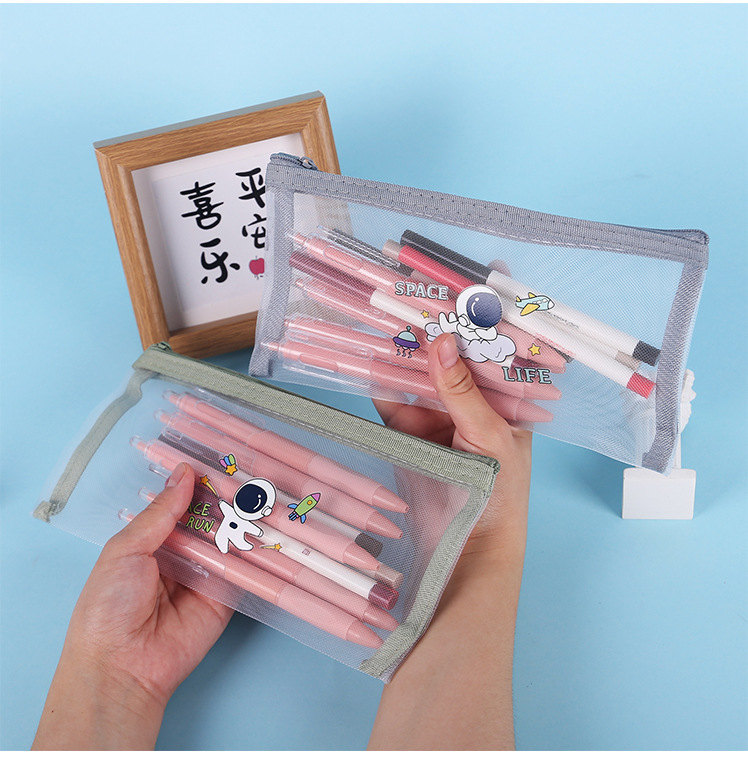 투명 메쉬 연필 가방 한국어 버전 ins 스타일 대용량 초등학생 시험 특수 문구 상자 보관 가방 연필 가방