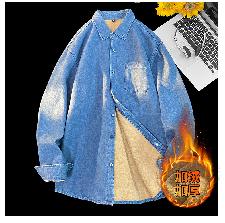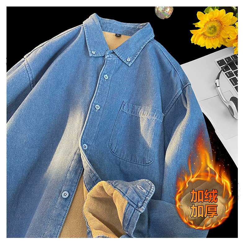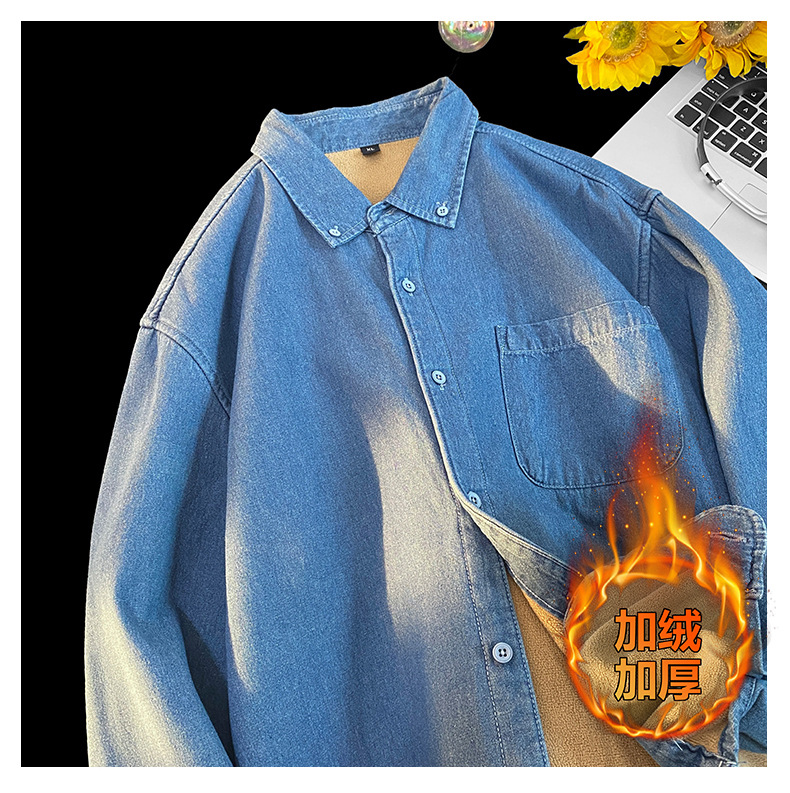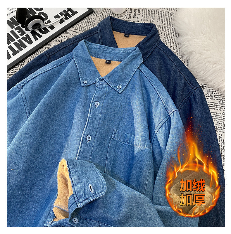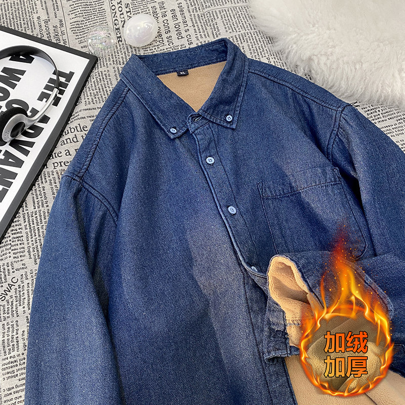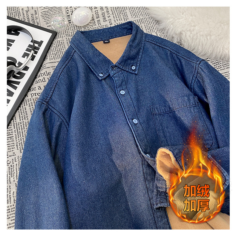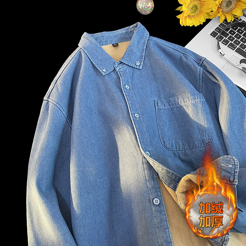 무료 배송 2024 트렌디 신작 겨울 스타일(국경 간 공급) 벨벳 두꺼운 데님 셔츠스토어 가기