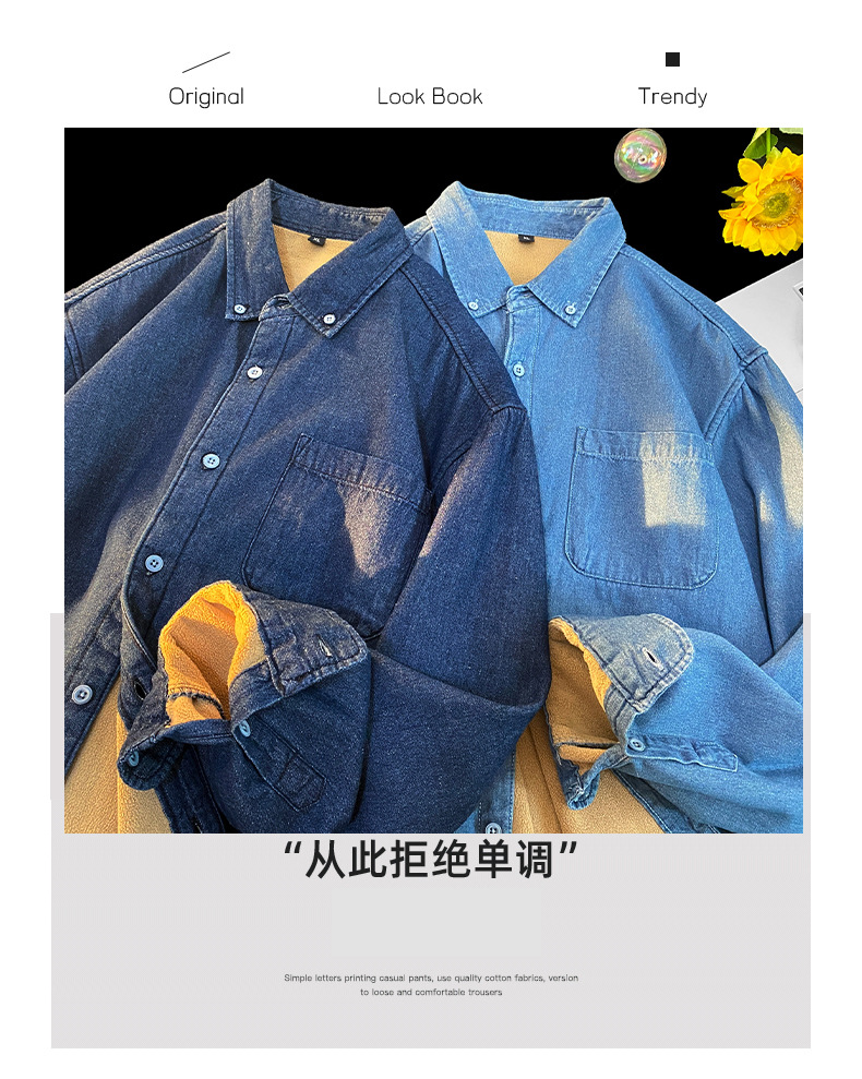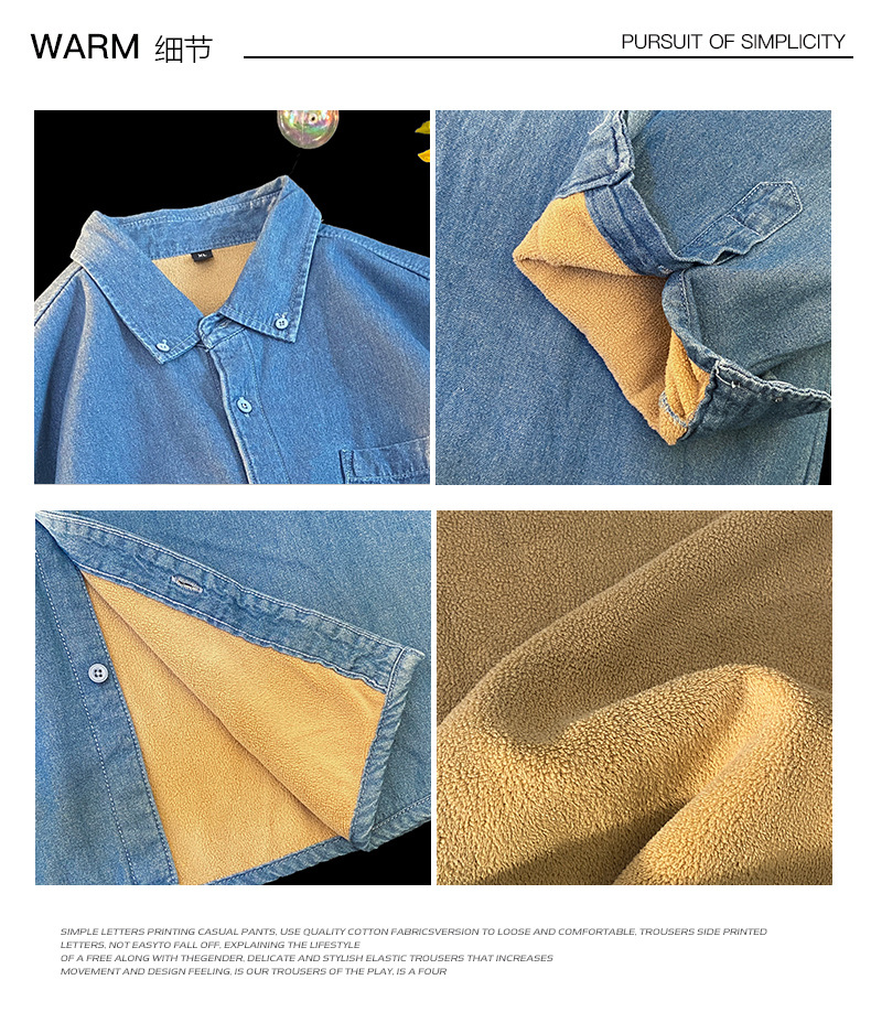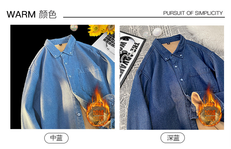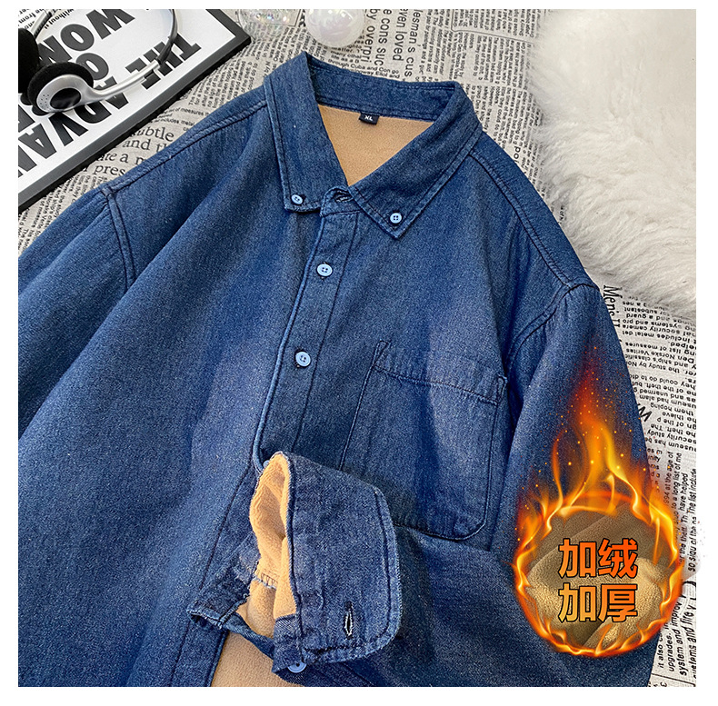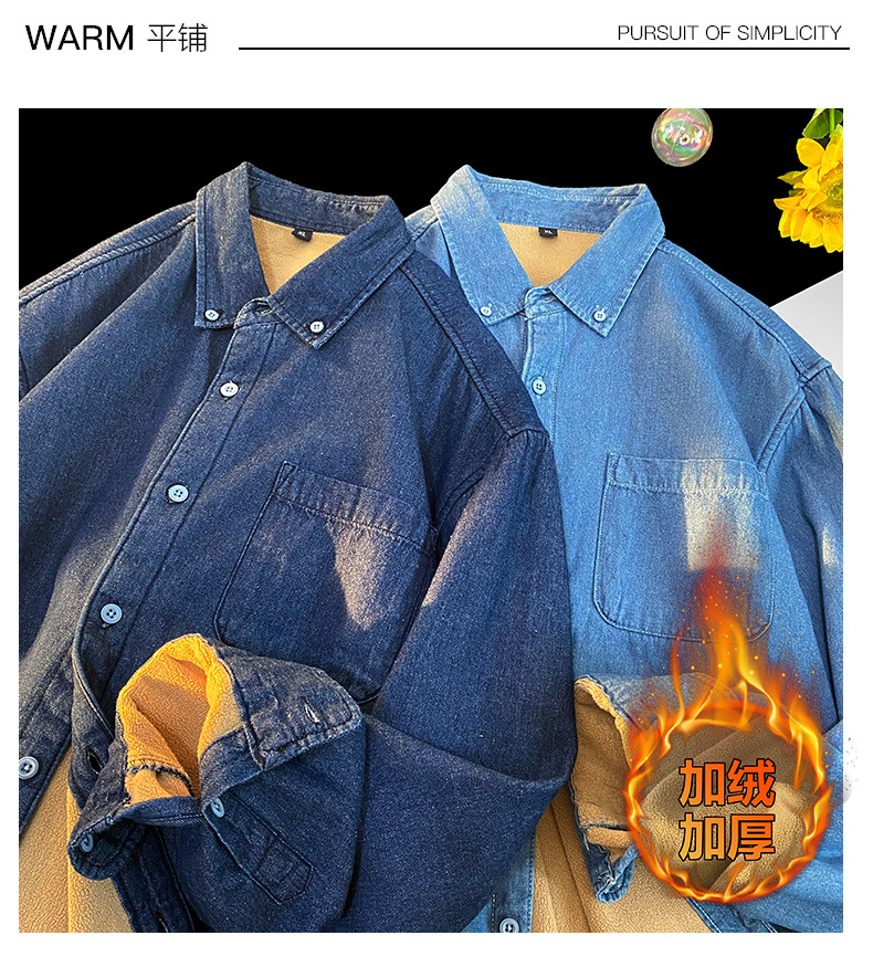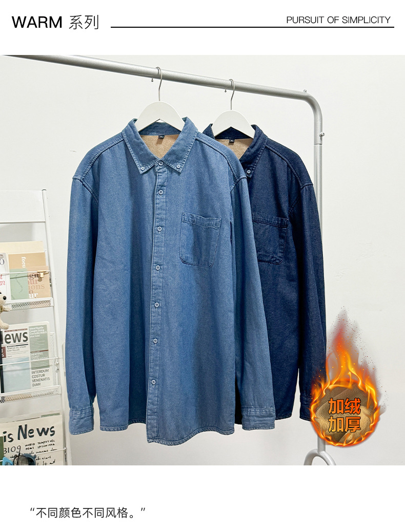 무료 배송 2024 트렌디 신작 겨울 스타일(국경 간 공급) 벨벳 두꺼운 데님 셔츠스토어 가기
