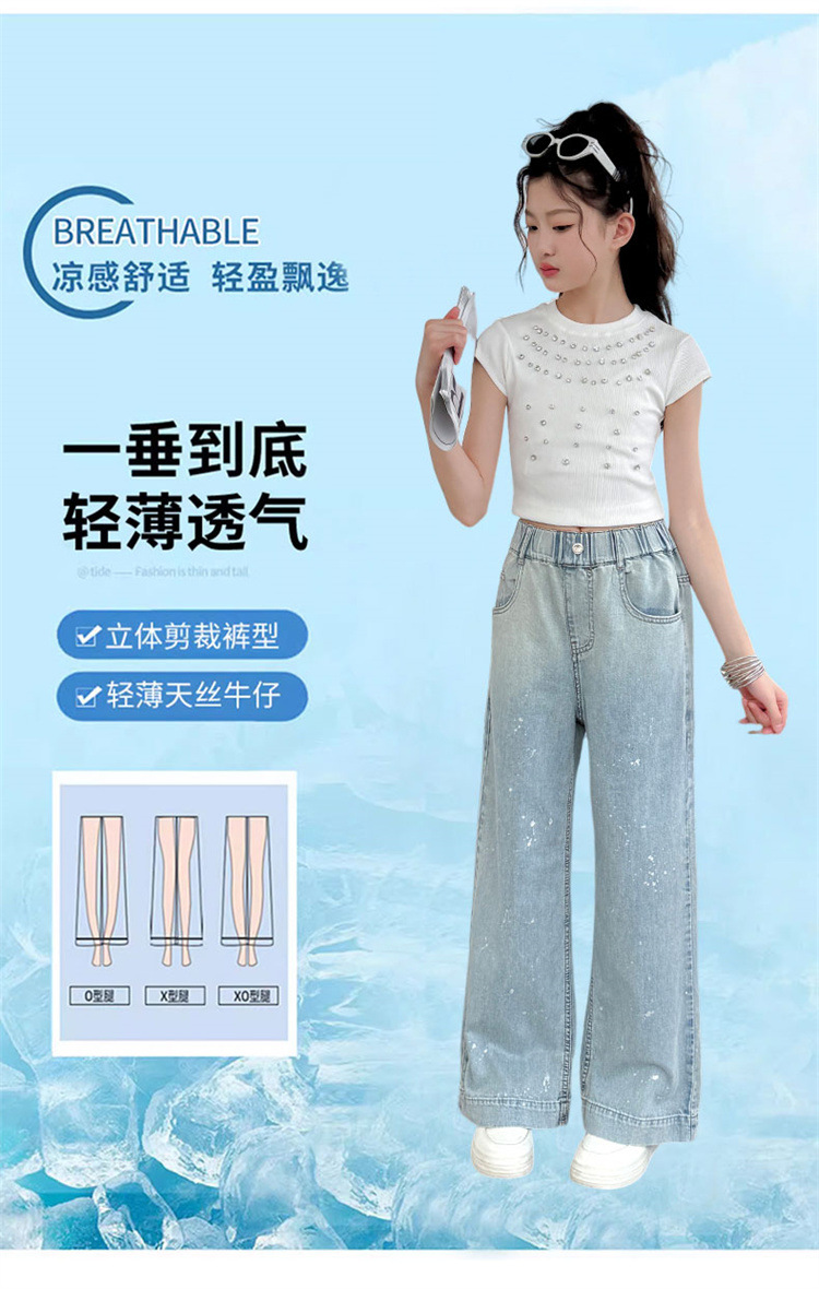 여자 청바지 여름 얇은 2025 새로운 큰 어린이 여름 스트레이트 바지 어린이 와이드 레그 바지 중학생 도매스토어 가기