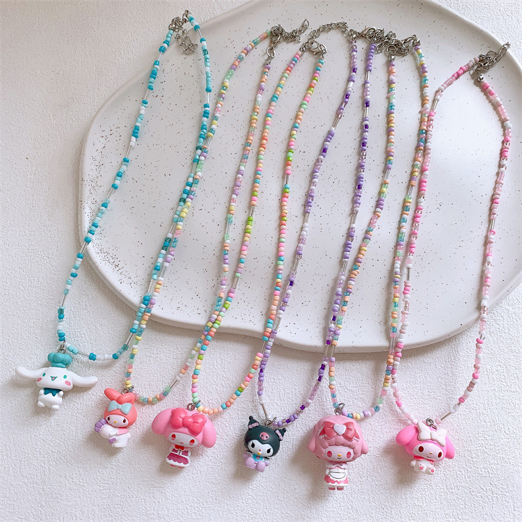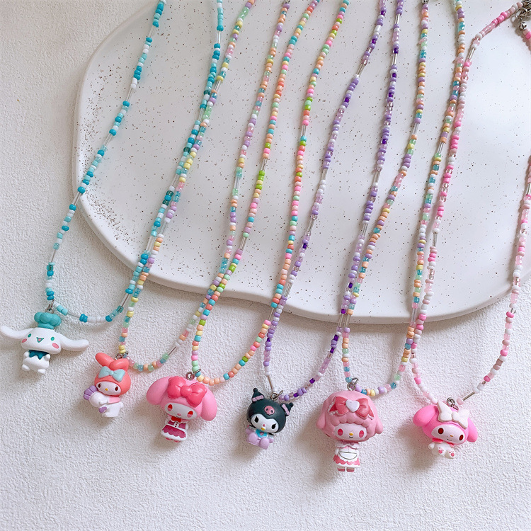 새로운 어린이 귀여운 만화 멀로티 목걸이 소녀 공주 다채로운 작은 쌀 구슬 펜던트 목걸이 액세서리스토어 가기