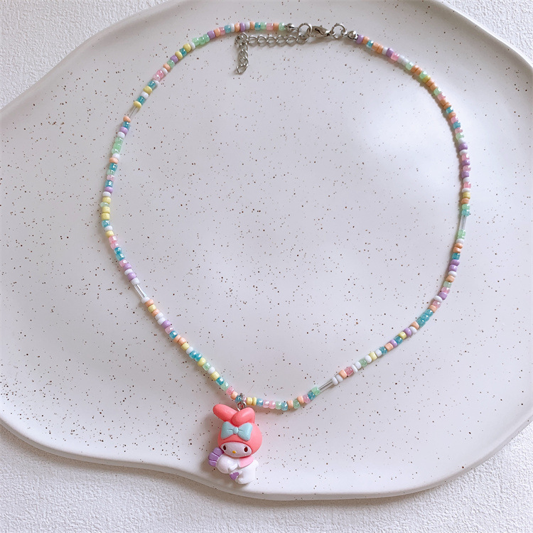 새로운 어린이 귀여운 만화 멀로티 목걸이 소녀 공주 다채로운 작은 쌀 구슬 펜던트 목걸이 액세서리