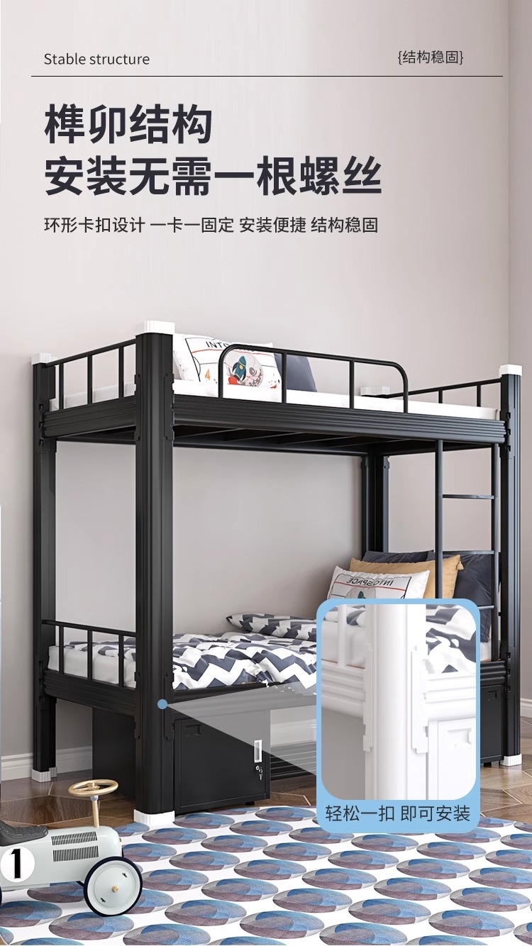 닫힌 프로필 상하 이층 더블 아이언 침대 학생 직원 기숙사 이층 침대 높고 낮은 선반 침대 성인 아파트