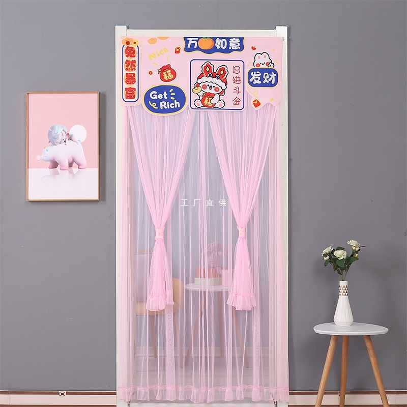 ✅레이스 거즈 커튼 홈 더블 레이어 거즈 도어 침실 안티 모기 펀치-프리 도어 커튼 장식 파티션 커튼, 교수형 커튼 제공 커튼
