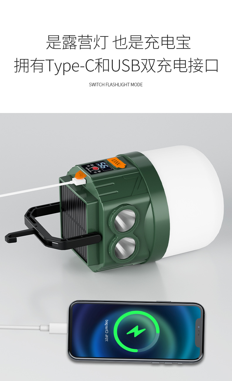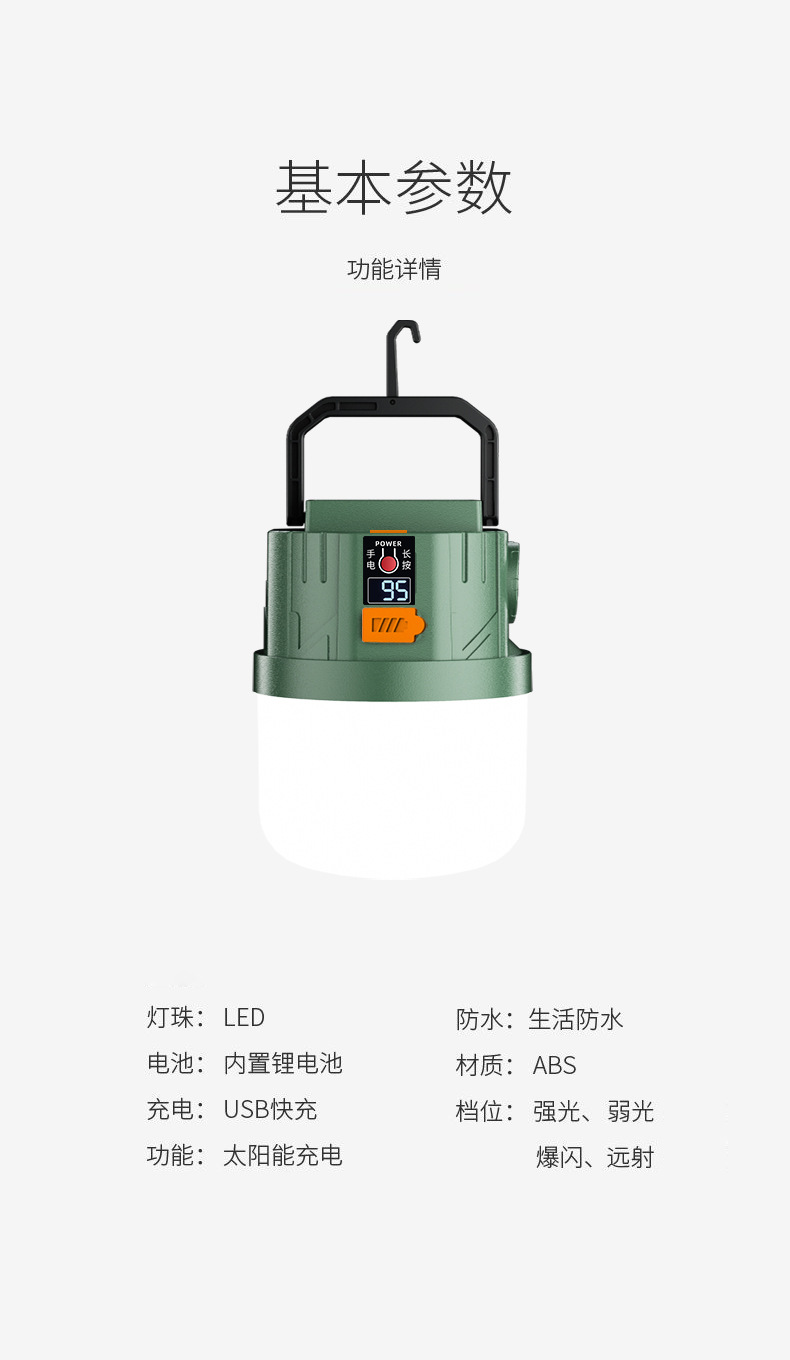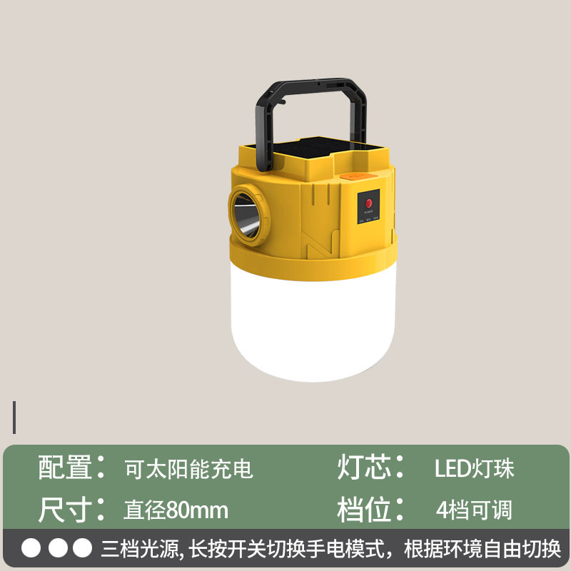 캠핑 조명은 태양 충전식 긴 내구성 텐트 조명 비상 조명 야시장 실속 조명 충전식 조명이 될 수 있습니다.스토어 가기