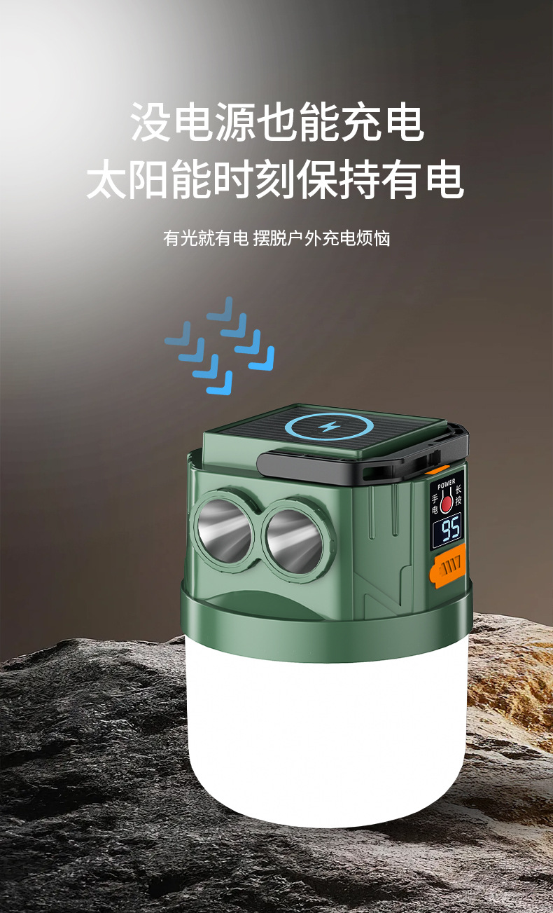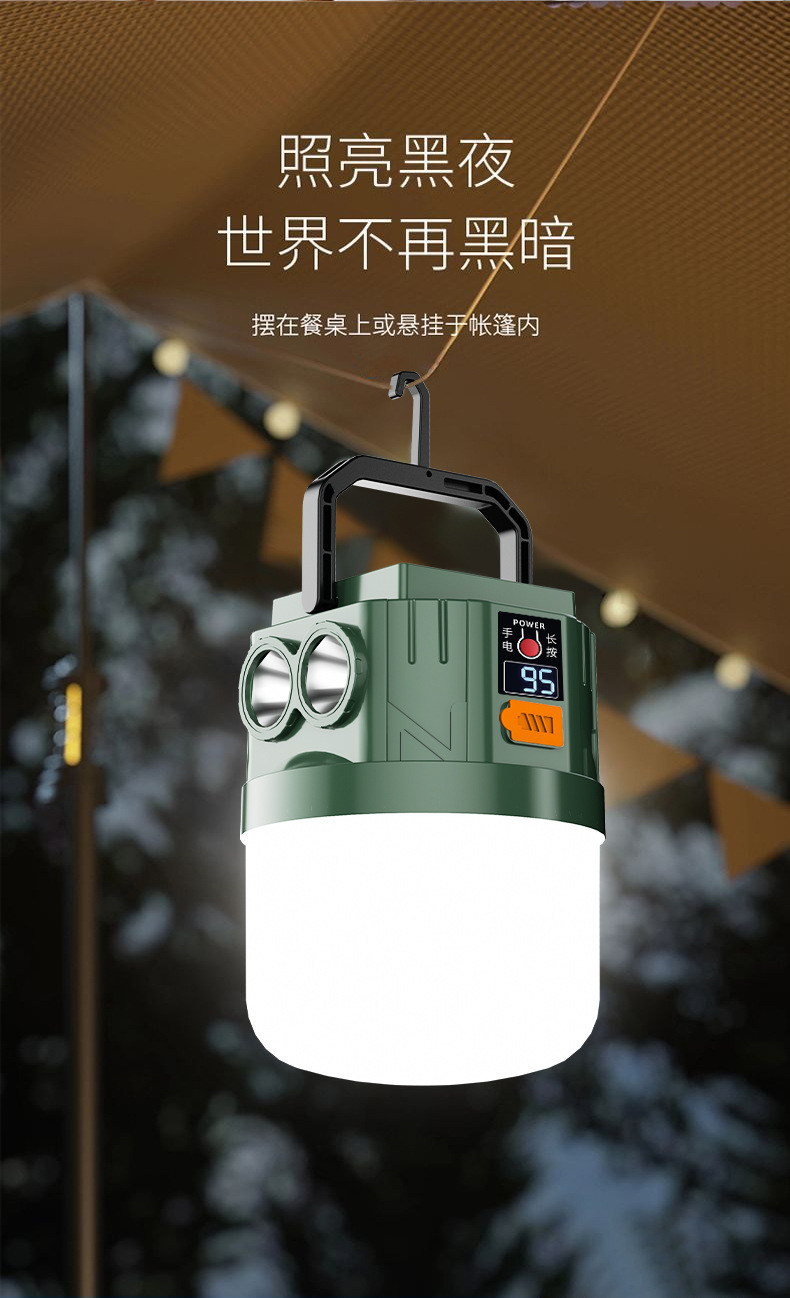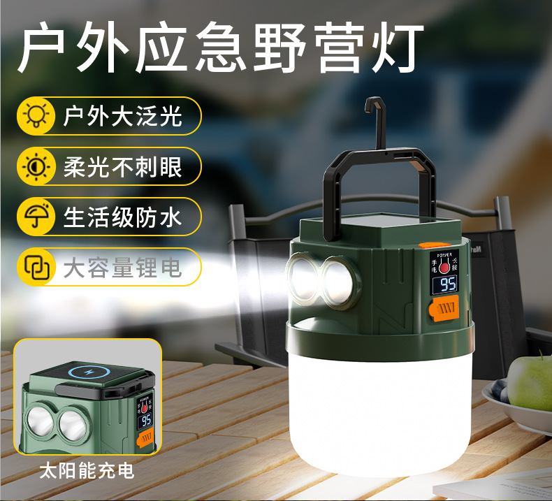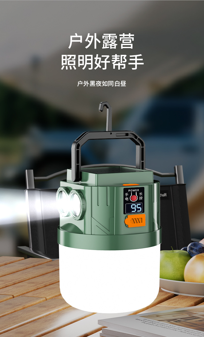 캠핑 조명은 태양 충전식 긴 내구성 텐트 조명 비상 조명 야시장 실속 조명 충전식 조명이 될 수 있습니다.